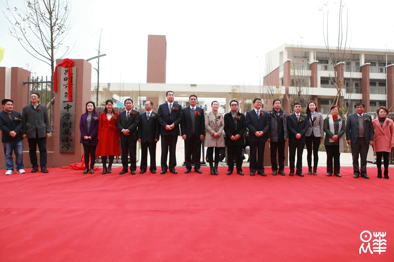 签字仪式完成后,所有与会领导来到昆明市第一中学附属小学校门口见证揭牌仪式,揭牌由西山区区委书记周红斌、昆明市第一中学校长赵灿东完成。