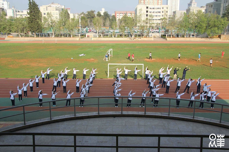 当白云在蓝天下遨游,当时光从笔尖溜走,当青春的热情与紧张而欢畅的高一生活碰撞,当老师的幽默与顽皮少年的心交汇融洽,相遇在昆华园的,是我们;当同学之间默契友爱,当你我不约而同的露出笑颜,相遇在昆华园的,是我们。