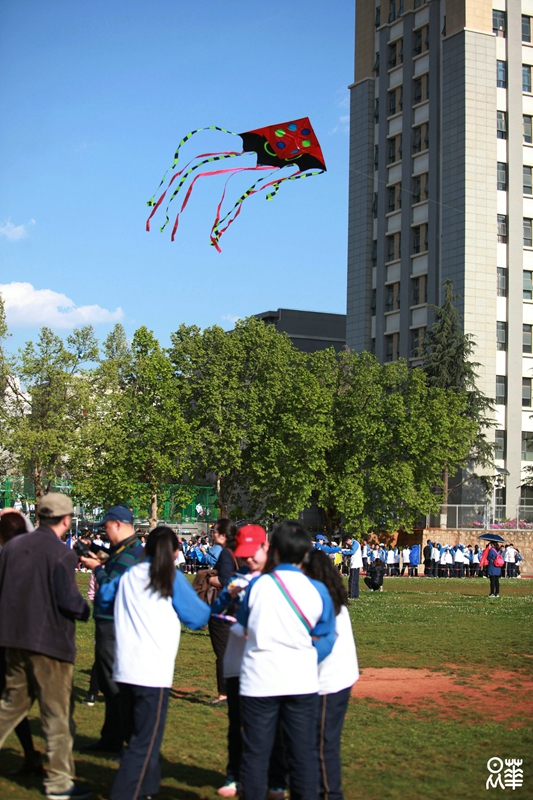 昆华园,三月晴空。这片晴空下的春风洋洋,不似剪刀,更像柔涛,将风筝扶上云霄。