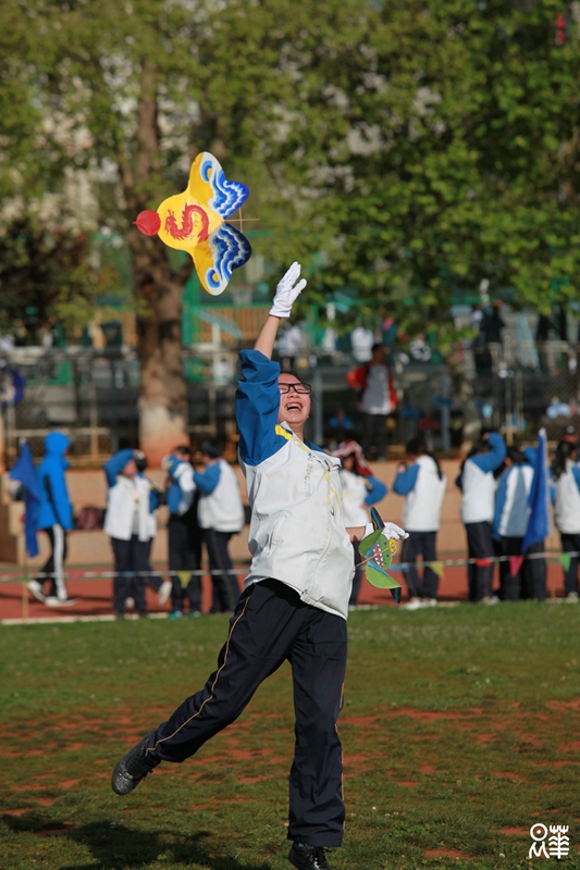 彩旗围绕的绿茵场上,风筝飞舞的晴空下,首届风筝节闯进了一中人的视野。