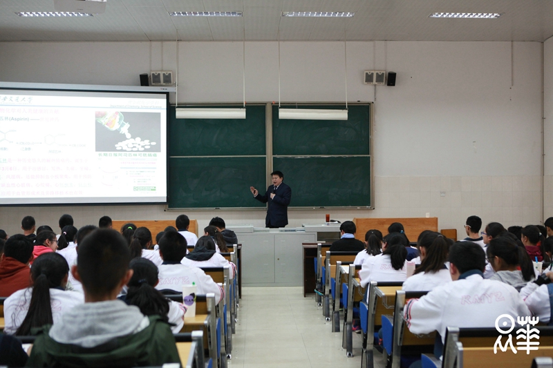 随着时代的发展,社会的进步,化学在我们生活中的重要作用越来越凸显。我们身边处处有化学,我们的生活也离不开化学。唐玉海教授先从几种常见药物的化学组成介绍起,一步一步带领我们深入化学殿堂。譬如唐教授讲到了阿司匹林,这让我们对那些平时“只闻其名,不见其功效”的药物有了更深次的了解。尽管唐玉海教授所讲授的大多是我们高一学生还没学过的知识,但是我从身边同学专心致志听讲的神情看到了大家对知识的渴求,以及对唐玉海教授讲座的喜爱。望我们都能坚守这份认真,不忘初心,学好化学,用好化学。(文字:高一5班 杨雅云 摄影:王倡剑)