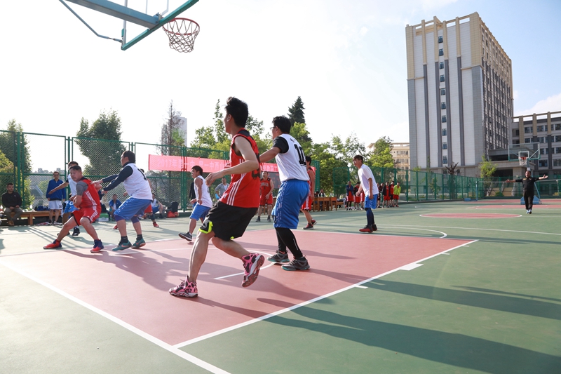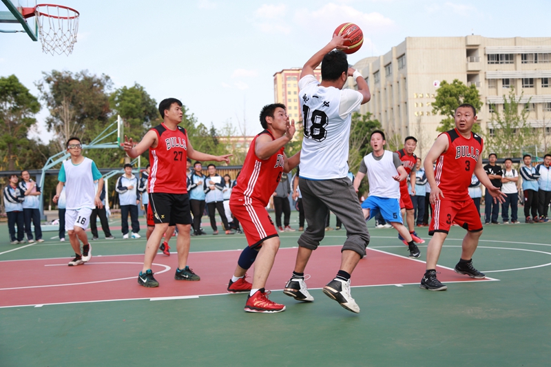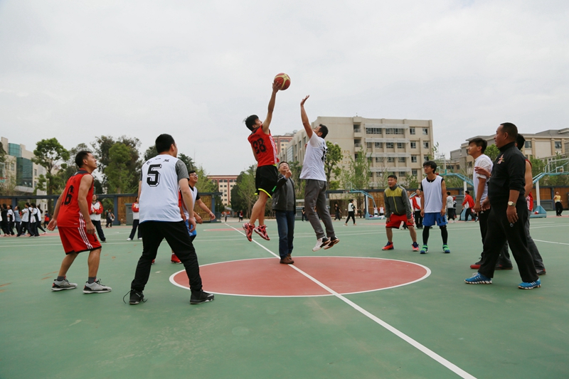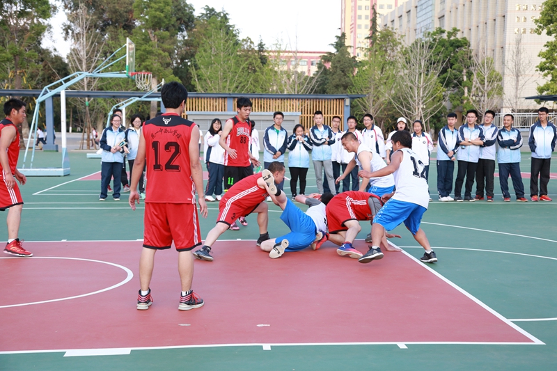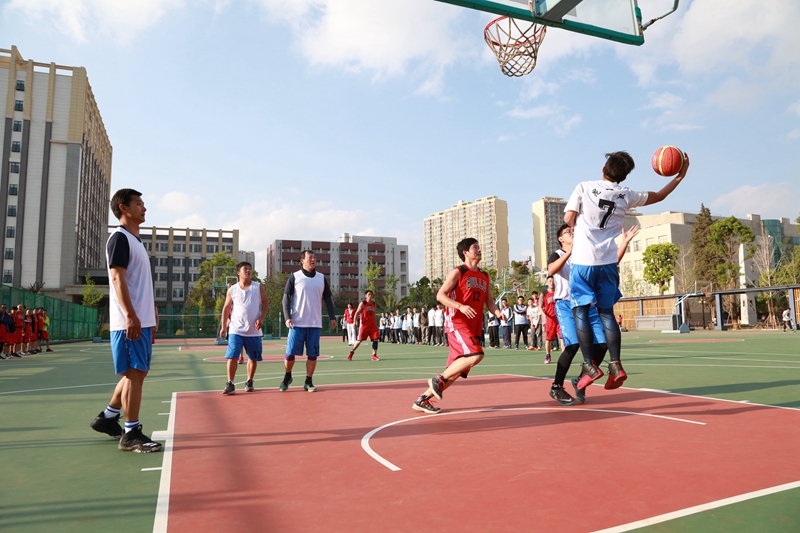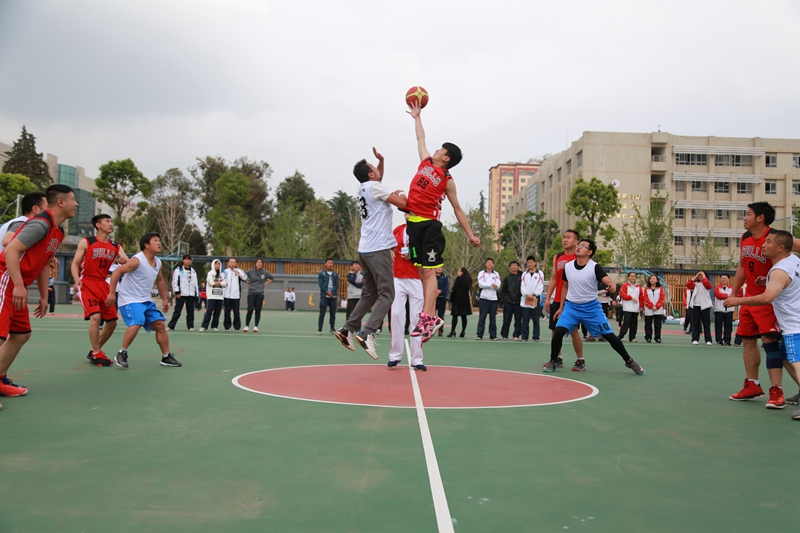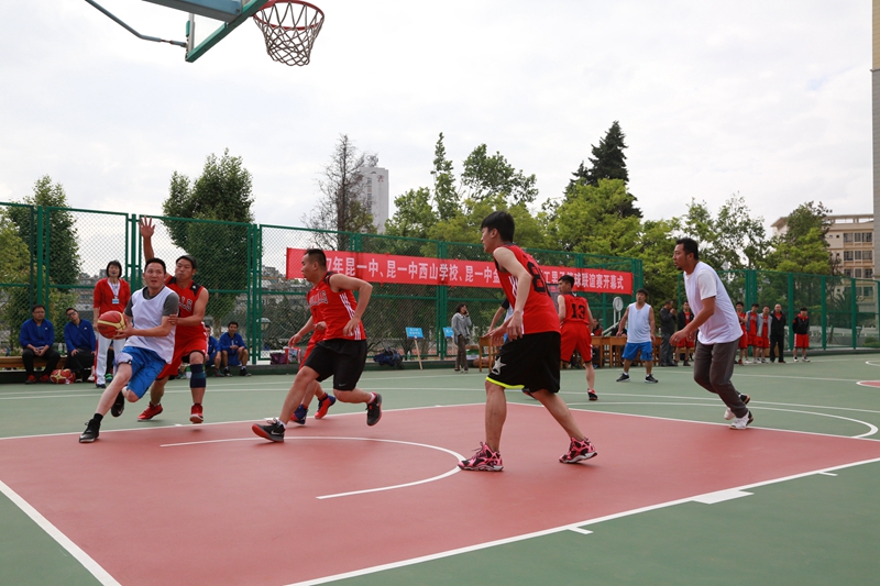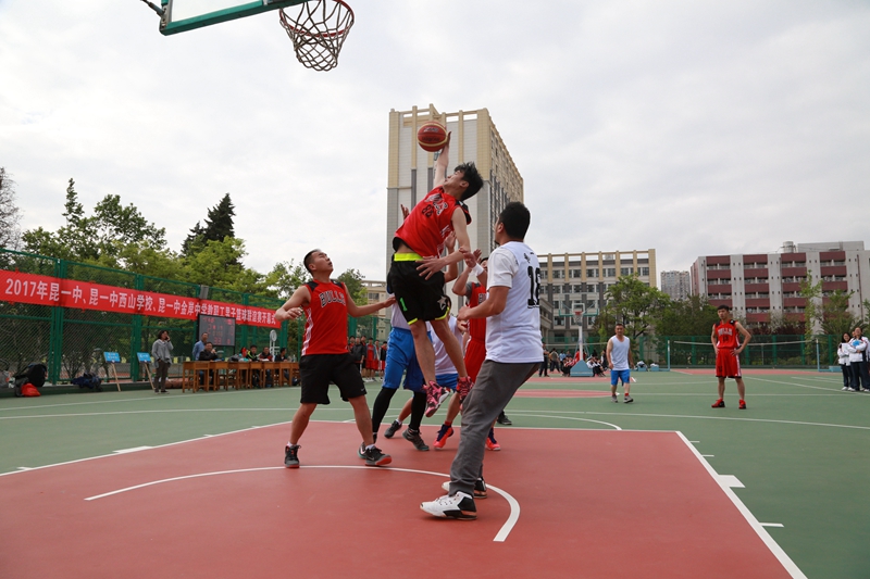 2017年4月18日,春意盎然,昆一中、昆一中西山学校、昆一中金岸中学教职工男子篮球联谊赛举行。开幕式上,工会主席孙碧桧致辞,三校篮球联谊赛旨在增进本部与各兄弟分校之间的友谊,促进三校间教师们的沟通与了解,是一次团结的盛会,一次凝聚人心的盛会,一次展示才能的盛会,希望大家携起手来,共谱昆一中、昆一中西山学校、昆一中金岸中学的美好篇章!揭幕战由昆一中本部对阵昆一中西山学校。哨音未落,比赛开始。激烈的拼抢,犀利的突破,严密的防守,眼镜撞掉了,人撞倒了,扣人心弦的比赛吸引了不少同学在场边观战。最终昆一中本部以53:44小胜昆一中西山学校。三校篮球联谊赛采用主客场循环赛制。接下来,昆一中本部教师队将迎战昆一中金岸中学教师队,客场再战昆一中西山学校教师队。