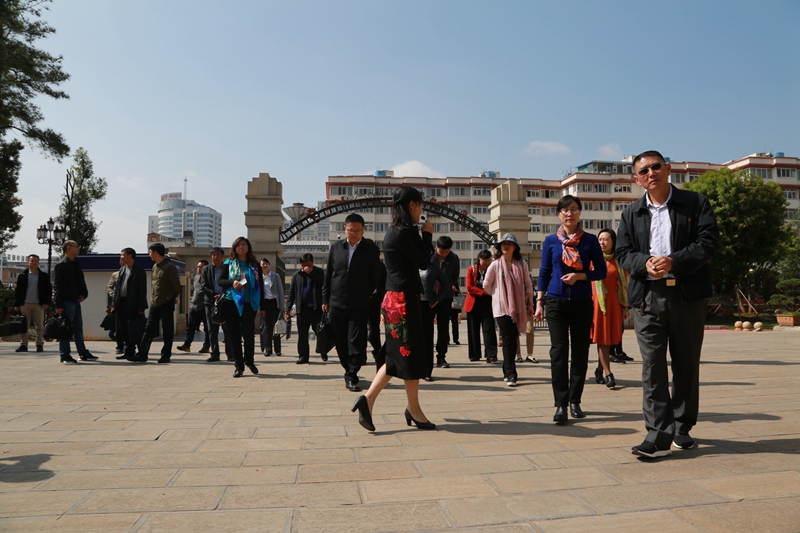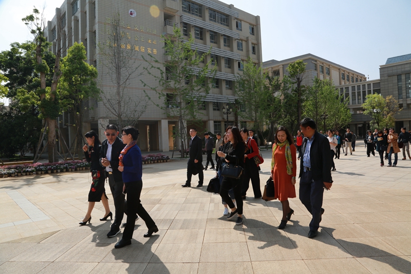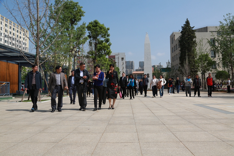 2017年4月20日上午,昆明市副市长王建颖带队现场调研我校创建全国文明城市工作,赵灿东校长、高富英书记及其他校领导班子成员陪同王建颖副市长一行参观学校。在我校创建全国文明城市宣传展板前,王建颖副市长一行长久驻足,王副市长对我校内容精当,设计美观的“创建全国文明城市”展板高度评价,并不时用手机拍照。随后在我校十一楼会议室现场召开了昆明市创建全国文明单位人文环境整治和未成年人成长环境建设指挥部第三次工作会议,市文明办、市教育局、市文广体局、市公安局、市住房城乡建设局、市工商局、市城管综合执法局、市卫生计生委、市食品药品监管局、市消防支队分管领导,高新区、经开区、度假区管委会,五华区、盘龙区、官渡区、西山区、呈贡区、晋宁区政府分管领导及我校校领导班子与会。人文环境整治工作组、未成年人成长环境建设工作组指出当前存在的一些问题,各参会部门结合“创建全国文明城市”工作实际提出了一些工作建议。三位北京的指导专家相继发言,昆明全市上下已经形成了创建全国文明城市的浓厚氛围。结合北京的“创建全国文明城市”的经验,专家希望昆明在创建工作中更加凸显细节管理,进一步加强内外部环境氛围的营造,呈现更多的人文文化活动。对于我校的创建全国文明城市工作,专家在发言中给予了积极肯定。我校师生精神饱满,学生朝气蓬勃。参观过程中,他们随机抽查我校学生对社会主义核心价值观的掌握情况,学生皆能流畅背诵。对于我校在学科教学中渗透社会主义核心价值观教育的问题,学生的回答令人满意。最后王建颖副市长总结道,今天的现场会就是要发现问题,有针对性地解决问题。王副市长进一步明确了一些此前尚不清晰的问题,希望各单位将创建全国文明城市工作和常规工作紧密结合,深入、持续推进创建全国文明城市工作。