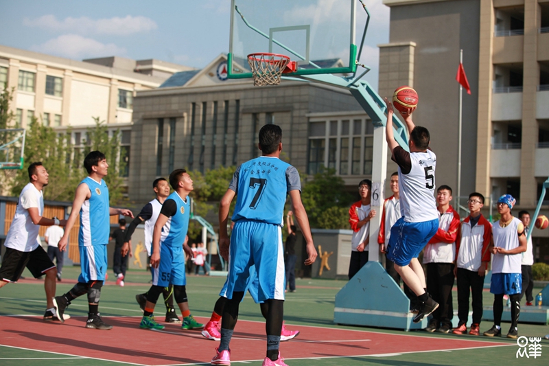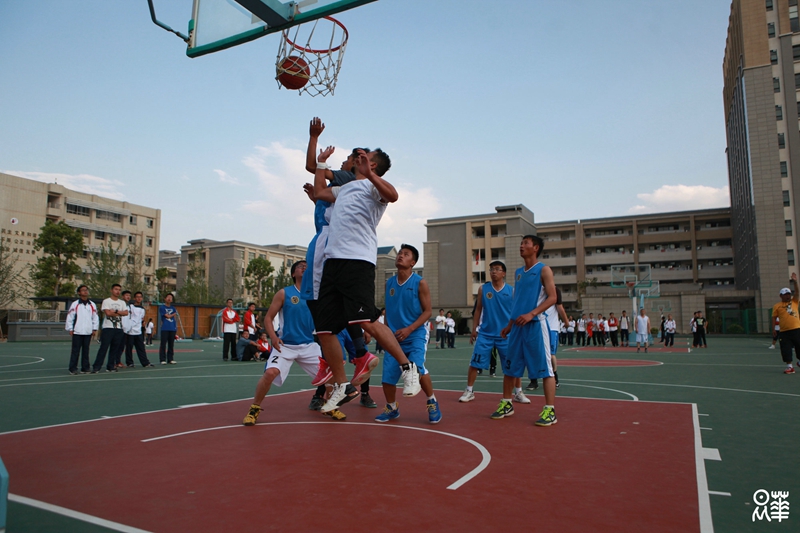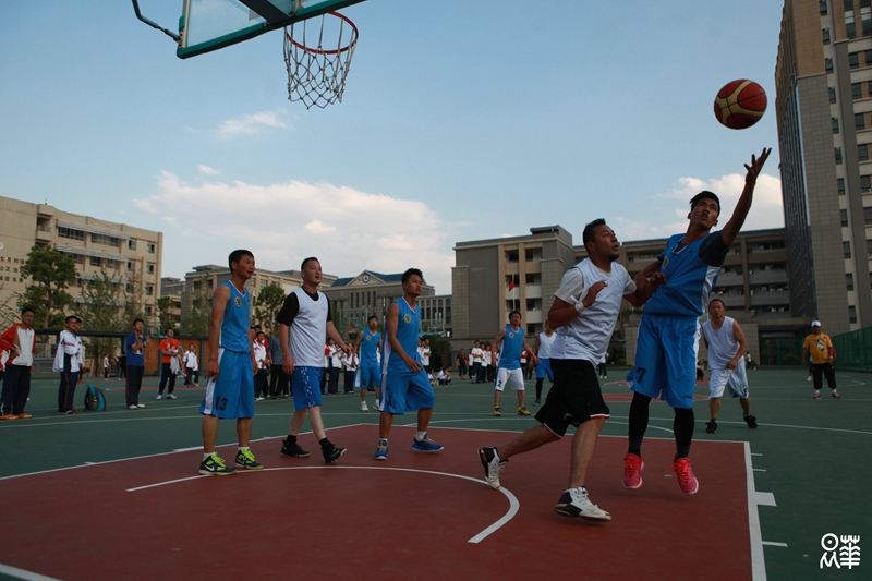 2017年5月2日下午17:20,三校教职工篮球联谊赛第3场比赛在我校篮球场进行,昆一中本部对阵金岸分校。比赛一开始,双方队员都不甘示弱,全力相拼,开场近3分钟才由本部率先打开僵局。随后双方各有建树,比分在胶着中上升。每当一队连续得分之后,另一队就及时请求暂停,教练快速分析并布置新战术。一有精彩配合进球时,场上掌声和欢呼声不绝,观众们都在为完美的配合、精彩的进球加油助威。经过20分钟较量后校本部以28:20取得上半场胜利。稍作休整,双方交换进攻方向再战。虽然都比较疲劳,但双方拼抢积极,以饱满的状态完成比赛,最终校本部凭借主场优势以62:55取得本场比赛胜利。