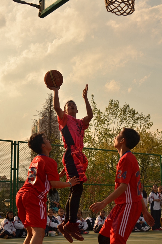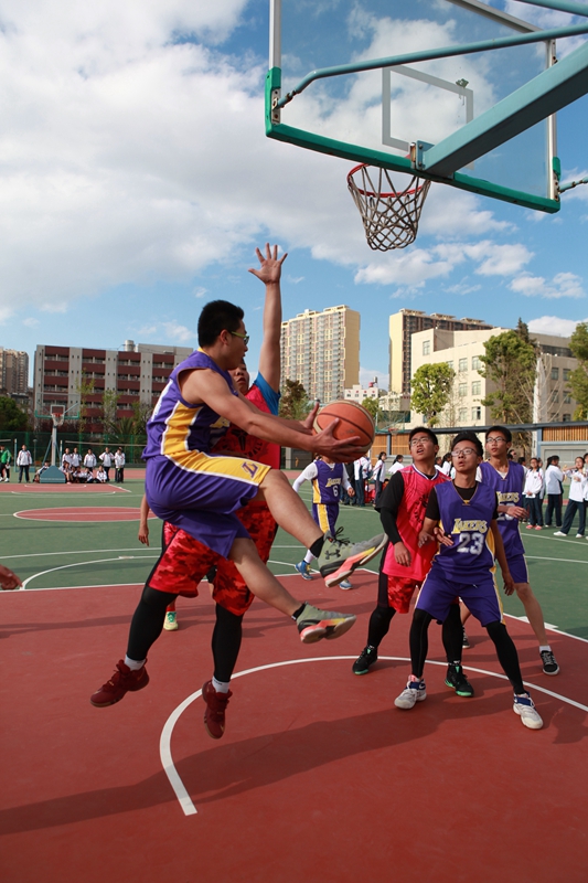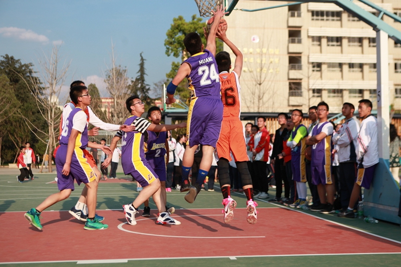 那几日的校园较之以往,有些不同,只因为,孟春的春风啊,把“春风杯”送到了。鞋底在晒得滚烫的地面上摩擦发出的刺耳声响;篮球在空中旋转着撞进篮筐“咚”的一声;场边观众振奋人心的呐喊,这些,正是昆华园的热闹声响。