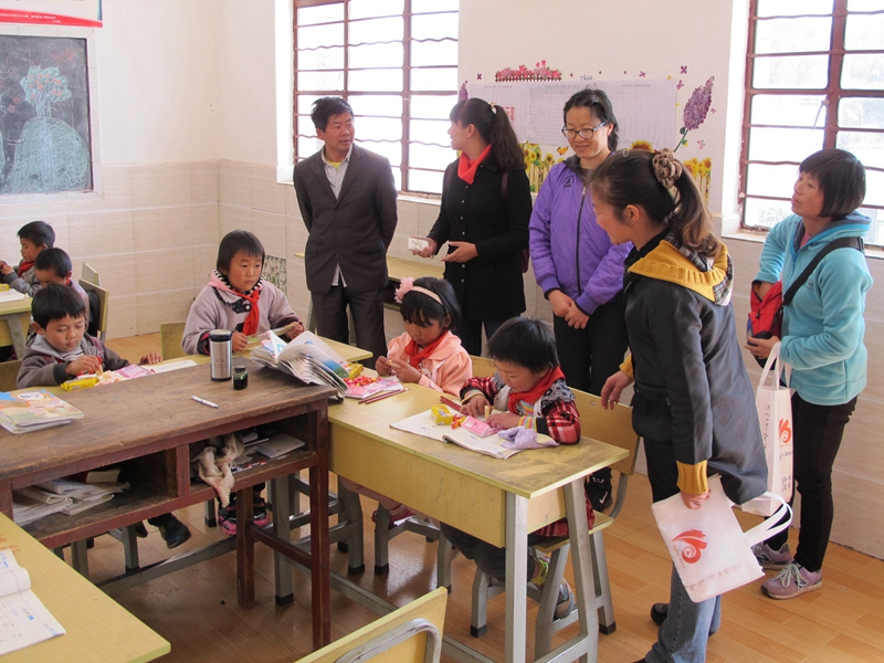 2015年11月26日,农工党昆明市委昆一中支部的老师们带着农工党昆明市委和昆一中党委的殷殷期望和浓浓的关爱,一行十余人奔波了将近4个小时,来到位于楚雄彝族自治州武定县插甸镇的水城小学,进行了为期一天的学习交流帮扶活动。在学习交流中,老师们进一步了解到,水城小学离县城有80余公里,山高水远,交通不便,长期的贫困使这里大部分的山民前往外乡打工挣钱,催生了不少的留守儿童。在这所仅有35名学生的小学里,一到三年级的学生中,有16名学生长期住校,生活自理。但是在这样艰苦的条件下,学生们没有放弃对知识的渴望。尽管大部分的学生至今仍没有到过县城,但他们从来没有放弃过对外面世界的向往。