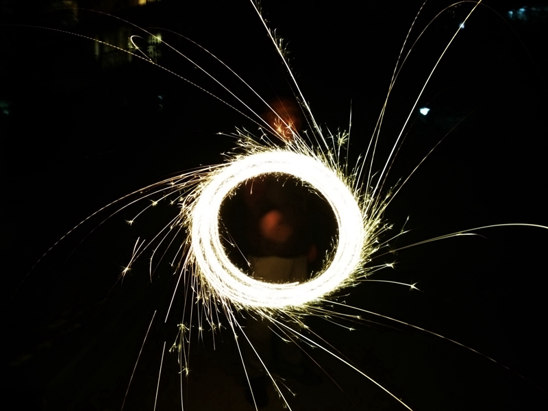 从照片的exif信息里看到确实是手机拍摄,能够使用手机的慢门模式,很好!这种照片属于“光涂鸦”的创作,不但构图好,还传递给观者过年放礼花的喜悦。