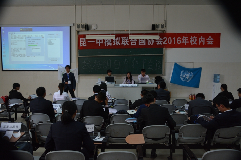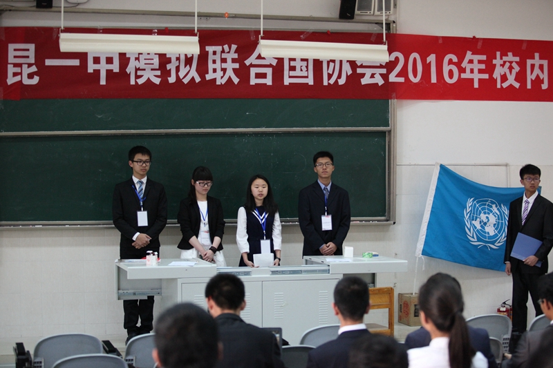 这是上周末发生在我校的一幕,4月16日-17日,我校模拟联合国协会2016年第一届校内会在成功举办。这次会议邀请到了云师大附中、云师大实验中学、昆三中、昆八中、昆十中(白塔和求实校区)、昆女中等八所学校的主席、代表和志愿者,以及来自云大附中的观察员共计100多人,共同就一些世界性的议题发表意见建议,展开讨论辩论。