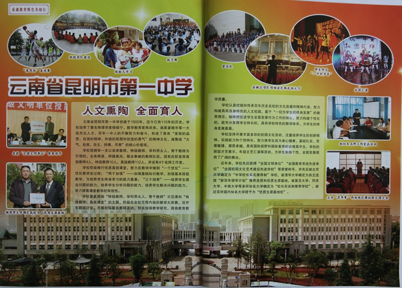 作为一所百年历史名校,基于“一切为学生的终身发展”这一教育理念,多年来,学校坚持全面实施素质教育,面向全体学生,始终把促进学生全面发展作为学校工作的核心任务,努力构建具有个性化,能充分发挥学生特长的具有昆一中特色的教学体系,为学生的终身发展奠基。