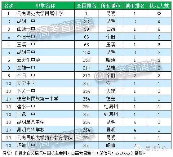 云南一共有18所高中上榜