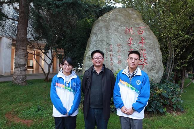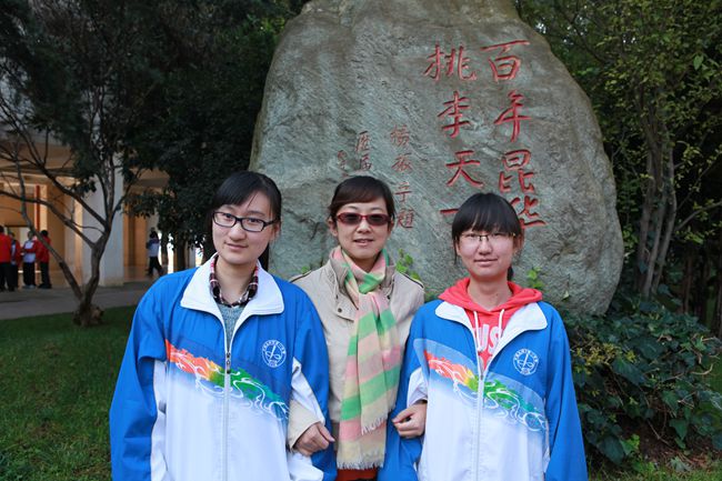 李雪菲、杨梓苑和班主任凹婷波老师合影