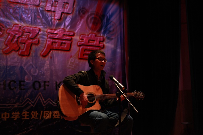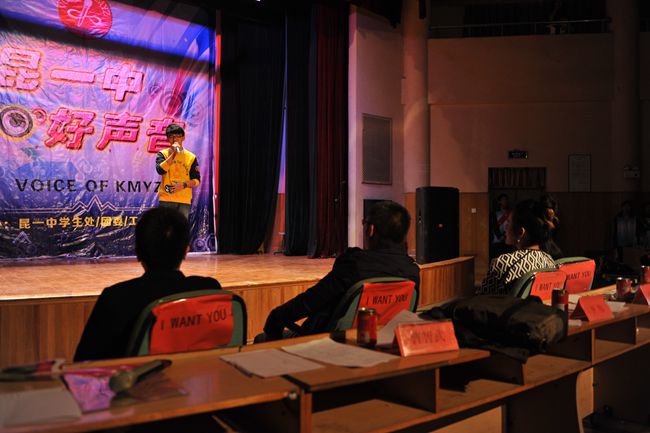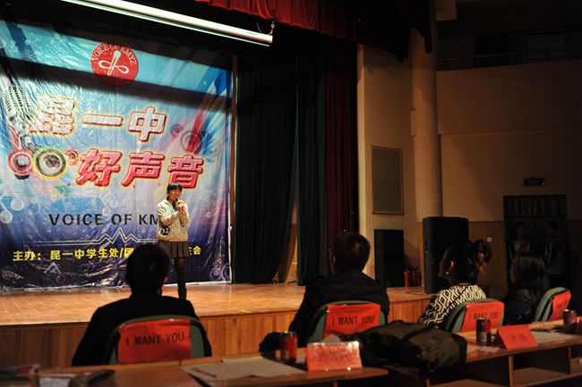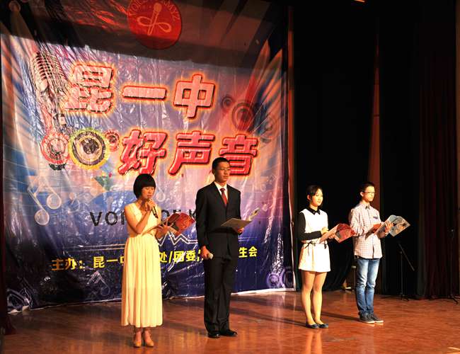日晚,一中好声音复赛在学校报告厅举行。云南艺术学院的尹伟、曹智武、张文君、张依涵四位老师受邀担任评委。师生同台,三十余组选手先后登台演唱,或深情款款,或激情澎湃。荧光点点,现场的观众陶醉在选手美妙的歌声中,兴奋地为他们鼓掌呐喊,比赛结束后还在意犹未尽地讨论着选手各具特色的表现。