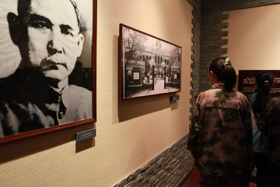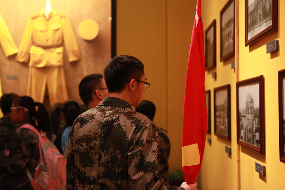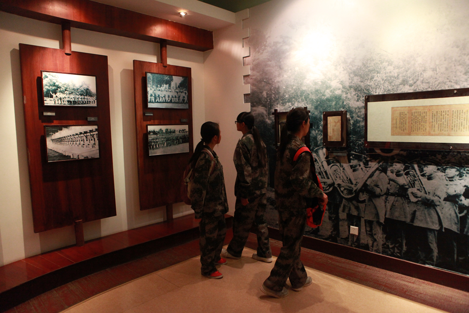 (文:普上鑫 图:王倡剑)金黄色的阳光洒在马路上,2014年11月30日下午,军事组参观了云南陆军讲武堂。云南陆军讲武堂是我国近代三大军校之一,人才辈出,被称为中国革命的熔炉和革命的摇篮。展馆的开始列举了一些出自讲武堂的名将,同学们深受震撼。得知当时的学生要学习军事、几何、化学、国文、英文、法文等课程后,同学们无不感叹他们学术之严谨。来到一幅火车站游行的复原场景前,那一声声广大师生的呐喊仿佛回荡在耳旁。一幅“三操两讲”的训练图,紧张和刻苦的学习过程印刻在画面之中。从军服到革命,浓浓的时代气息,虽然都已消失在历史的长河中,但在参观过程中,我们犹如置身于那个年代。在这次参观中,同学们不仅了解到了云南本土的军事史,同时也燃起了熊熊爱国心。先烈的牺牲和丰功伟绩,我们不能忘记。因此,我们要站在新的高度,把握未来。