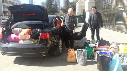 2014年12月24日,我校高一年级部分教师带着学校师生捐赠的旧衣物到富民县赤就中学和赤就中心小学开展献爱心活动。同时,老师们还自发捐款资助赤就中学的一名苗族学生,并对其给予鼓励。这是我校教师第五次到富民县献爱心。第一次是2013年1月到赤就小学捐书物;第二次是2013年2月到赤就乡白龙水井苗寨捐物;第三次是2013年5月到赤就中学捐书;第四次是到赤就乡磨丹小学捐物,赤就中学捐书。 师生捐赠的衣物堆满了教师办公室 盛情满满 这个冬天,多了一分温暖