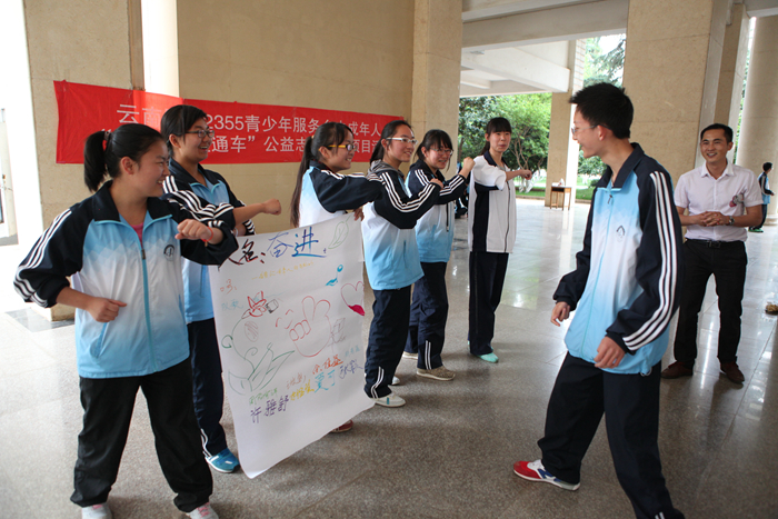 2015年4月9日,心语社在我校心语室、团委和昆明市共青团“12355”青少年服务台心理咨询处老师的协助和指导下,在校园内开展团体心理游戏活动,培养同学们的环境适应能力、沟通能力、团队合作等能力。昆一中“心语社”成立于2010年,成立至今致力于通过简单的心理游戏为一中学子营造和谐、融洽、愉悦的学习、生活氛围而服务。