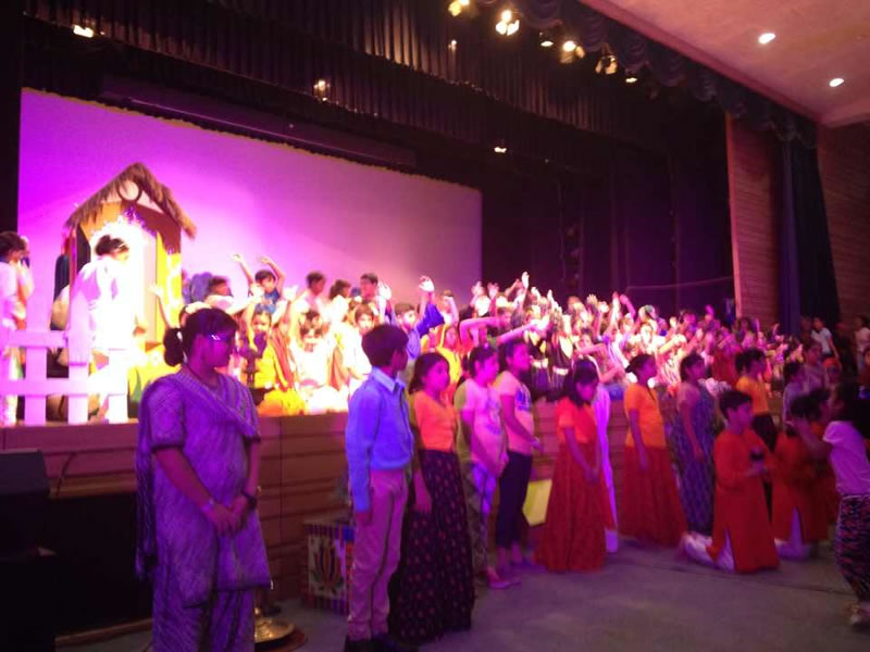 在友好学校,我们有幸被邀请观看学校低年级同学的表演。入场后,我们惊讶地看到,舞台上的道具全是学生亲手制作。表演开始,每一个演员都深深地沉浸在自己的角色中,故事大概讲的是一群小朋友和家长在旅行路上的奇妙际遇。有人演家长,有人演小朋友,有人演野人等,每一学生都掌握了自己扮演角色的精髓,一句句台词逗得大家哄堂大笑。我们后面坐的全是家长,他们享受着自己孩子的表演。在他们的舞台上没有主角配角之分,因为每一个学生都是主演,每一个人都尽情地演绎着自己的角色,少了谁都不能成就这部舞台剧,因此,每个人都是重要的。在家长眼中成绩并不是那么的重要,重要的是和自己的孩子一起成长,一起享受他们成长的过程。表演过程中,学生们一度落泪,感动于:那么小的孩子,就有这样的创造能力,有这样的团队协作精神,大家在一起分享成功的喜悦。不禁感叹, 这才是真正的舞台剧!也许有人说印度不如中国,不如的地方也许很多,但中国要向印度学习的地方也很多。