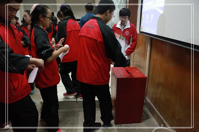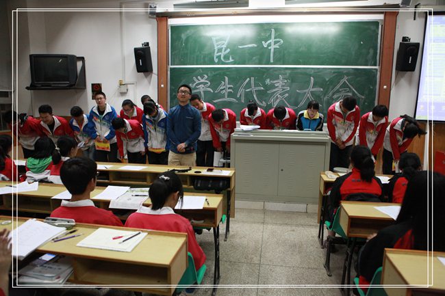 点,昆一中学代会暨学生干部换届选举大会在多媒体教室正式举行,团委老师王俊懿,高一、高二年级各班代表参加本次活动。本着公平、公正、公开的原则,本次选举每位候选人准备两分钟演讲,经过一个学期的锻炼,候选人们都对自己的工作有了进一步认识,在演讲过程中他们自信的风采赢得了台下的阵阵掌声。高一年级的候选人是经过部门层层筛选,由工作经历丰富的后备学生干部组成,在演讲中他们阐述了对学生工作的热爱和今后工作的打算,向老师和同学表明了自己的工作决心。整个活动历经一个半小时圆满结束,学生会竞聘结果也将于近日公布。(文:高一