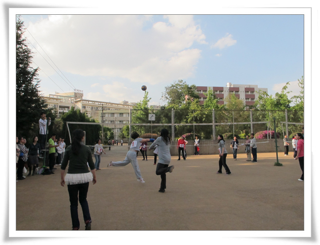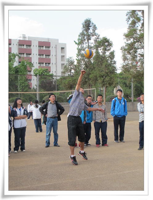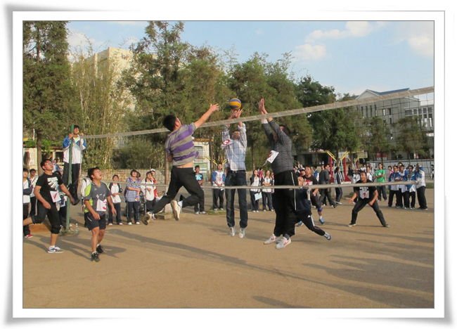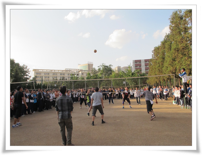 如果你习惯了老师们的正襟危坐、端庄娴静,那么就来排球赛场上看看吧,看他们激情迸发,看她们她们无所羁绊。2013年4月16日始,全校老师共计分为高一、高二、高三、行政四个组循环比赛,角逐冠军。