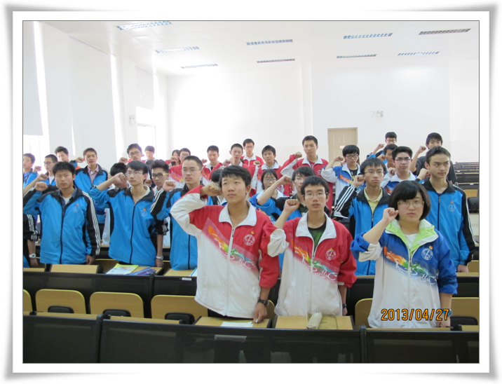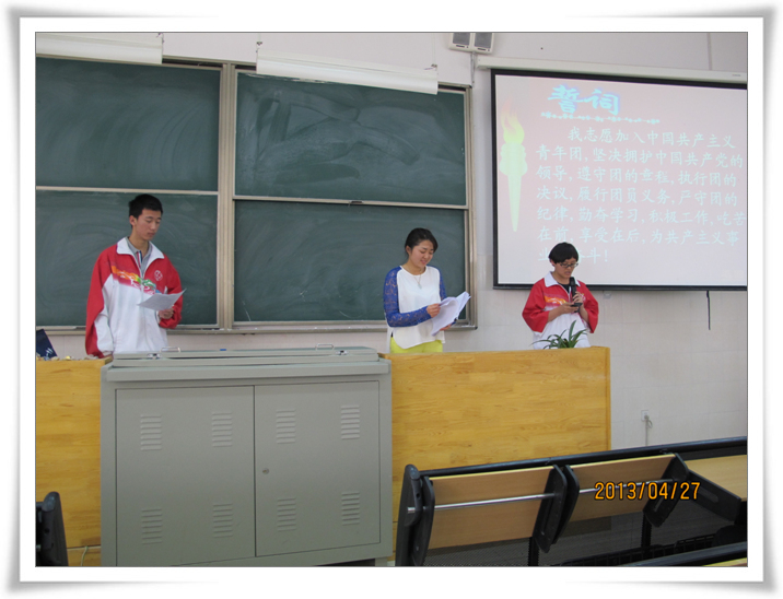 4月27日中午,学校团委在多媒体3教室隆重举行新团员入团宣誓仪式。首先,校团委牟老师向各位新团员讲授了团的系列知识,又向新团员们表示热烈的祝贺和诚挚的欢迎,祝贺他们从此成为一名光荣的中国共产主义青年团的团员,并对他们提出了新的要求。这次42名同学光荣的加入共青团,不仅使我校团组织壮大了力量,还为团组织输入了新鲜的血液,注入了新的活力。随后,各班团支书为同学们佩戴了团徽,仪式在团歌声中落下帷幕。