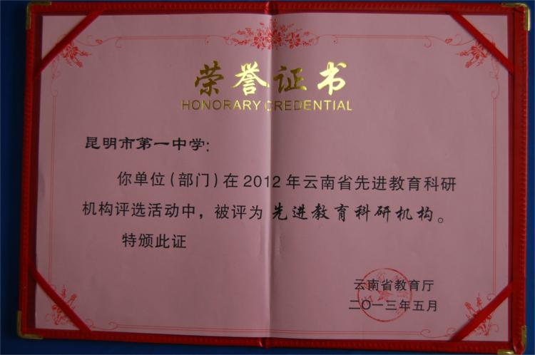 根据云南省教育厅云教研【2013】3号文件《关于教育科研机构及先进工作者评审结果的通知》,我校在全省包括大学、专科、中专、 教科院、中小学在内的三百多个评先候选单位中脱颖而出,评选为“云南省先进教育科研机构”,这是全校老师辛勤教学的同时坚持教育科研结出的硕果,是省教育厅对我校教育科研工作的肯定和鼓励。夏耘老师以其教科研方面的突出成绩,评选为“云南省先进教育科研工作者”,我们对夏耘老师表示热烈祝贺!希望全校老师继续努力,赢取我校教育教学和教育科研工作的更大辉煌!