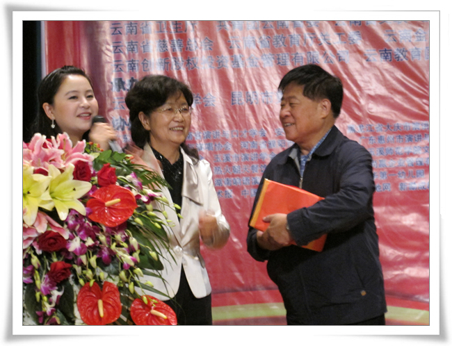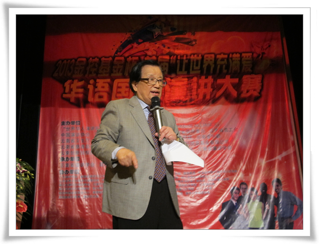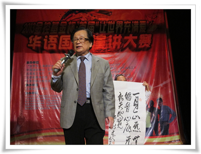 2013年8月10早上九点,首届华语国际演讲大赛开幕式在昆一中科技楼报告厅举行。开幕式最受瞩目和期待的就是有着中国“演讲泰斗”之称的共和国第一代演讲家、84岁高龄的李燕杰老先生亲临现场作《演讲铸魂与中国梦》的专题演讲。受现场观众的热情感染,李老抛开原先准备的演讲思路,给大家带来了一场更加有味道的讲座。李老虽然年届高龄,但声若洪钟,演讲于他已经不是一门艺术,而是一种智慧的感悟和挥洒。演讲结束,全体起立向李老致敬。