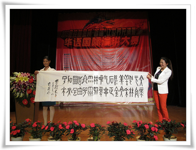 李老向海外选手赠送书法