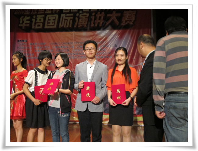 2013年8月11日,首届华语国际演讲大赛历经10日下午一点至九点半近八个半小时的复赛,从两百余名复赛选手选拔出的十九名选手于今早进行了总决赛,最终来自广州惠州的许大田以《爱是妈妈做的身上衣》的动情演讲摘取大赛特等奖。我校解绍巍同学荣获一等奖,袁唯、曹倚凡、董薇同学荣获二等奖,赵蕊同学荣获三等奖,李彦佳同学荣获优秀奖,学校荣获团体二等奖以及大赛组委会授予的特别贡献奖。