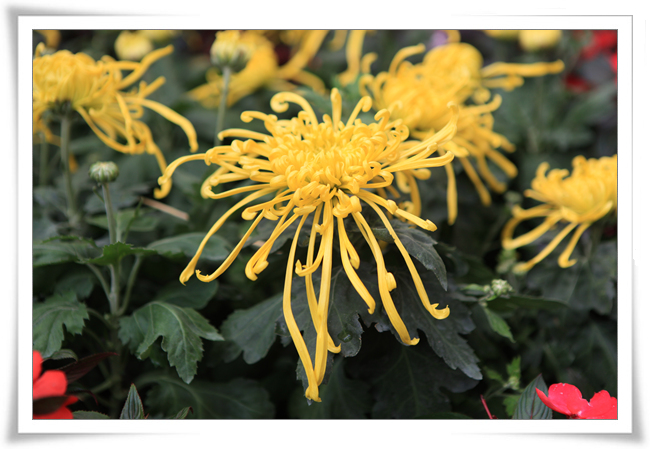 “满园花菊郁金黄”,正是金秋赏菊时。漫步校园,只要你愿意驻足,俯身,菊花开得“一丛浅淡一丛深”,烂漫之极。