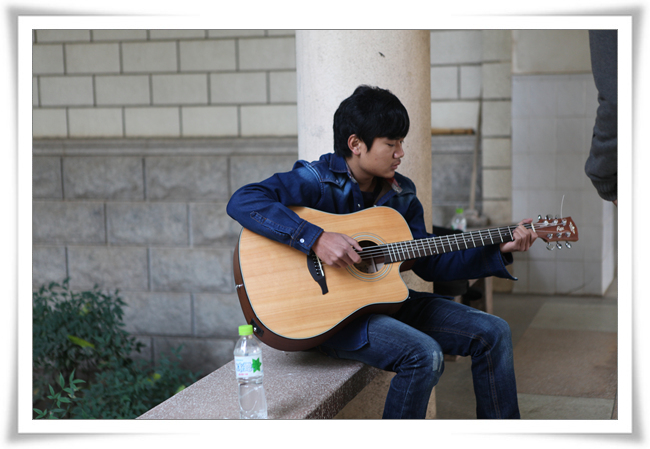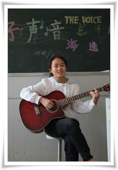 (记者:刘亦吟 摄影:王倡剑)经过一早上的激烈角逐,一中好声音结束了海选,产生了进入复赛的选手。早上八点半,科技楼小花园就挤满了选手,他们都在紧张地准备着,都想在短短四十五秒的展示时间里用最美的歌声打动评委的心。参赛选手的歌声,或小清新,或低沉浑厚,有的选手还带来了吉他,在展示歌喉的同时也秀出了自己的才艺。评委背对选手,公平地为他们的表现打分。在一中这样一所百年老校,也许处处皆有读书声,一中好声音为一中插上了歌声的翅膀,形成了读书声与歌声共鸣、学习与娱乐同在的轻松氛围。