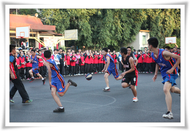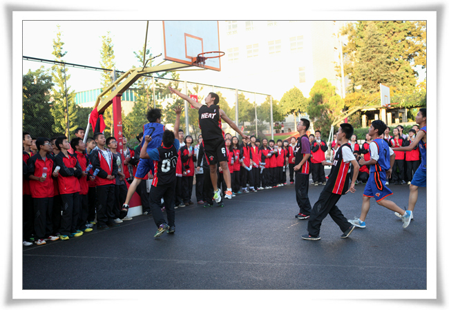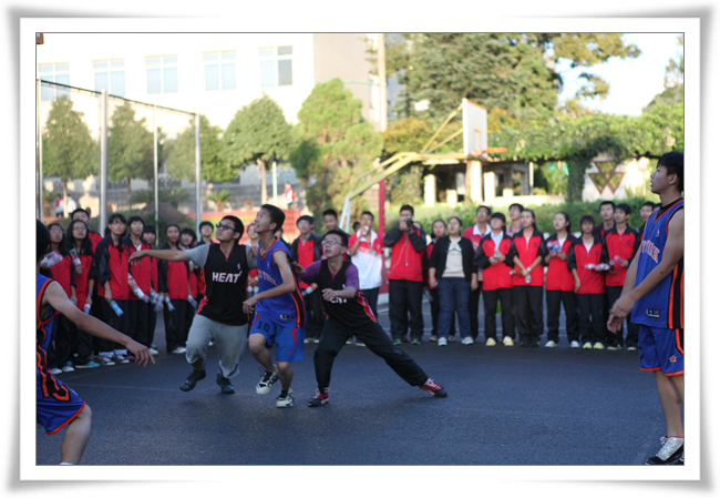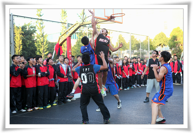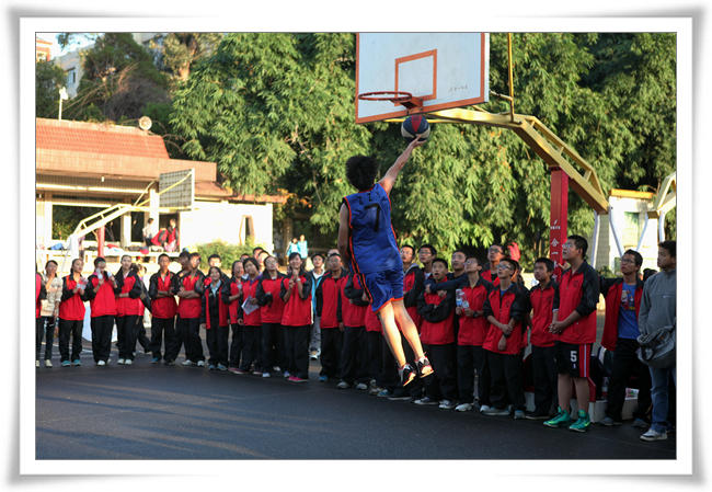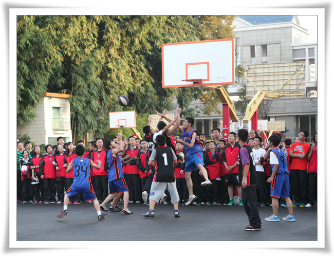 (新闻社记者:李房唏 摄影:王倡剑)2013年10月18日下午五点二十分,静谧的下午时分,篮球场上响起了嘹亮的加油声,这是2016届17班对阵3班的篮球决赛,也是高2016届篮球赛的收官之战。这场比赛也是双方啦啦队之间的较量,17班和3班的啦啦队都热情高昂,鼓足了劲,场上队员的汗水和场下啦啦队的加油声相互交织成了一幅动人的图画,吸引了许多其他班甚至高二高三年级的同学前来观看,场面非常壮观。“球进了!”迎来同学们一阵更加卖力的掌声和加油声。“唉,没进!”换来的却是同学们的鼓励与安慰。双方实力在伯仲之间,拼抢激烈,比分也一直处于胶着状态,甚至一度持平,下半场17班继续开赛以来的神勇表现,最终问鼎。篮球赛不仅仅是一场球员的比赛,锻炼的不仅仅是体魄更是灵魂,更能增加一个班级的凝聚力和进取心。