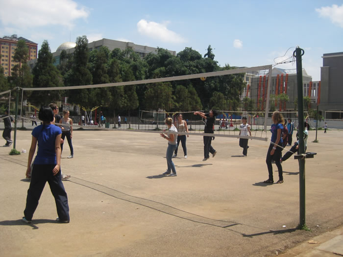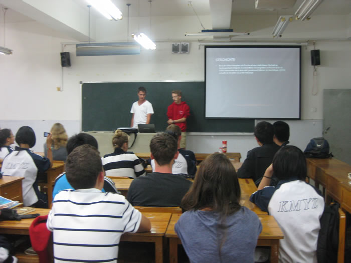 在为期13天的交流访问中,德国ESG学校师生深入体验了昆一中学生的日常学习生活。访问团师生一行观摩了我校升旗仪式,参与了接待同学所在班级的篮球、排球比赛,与我校德语班和国际部的同学进行了交流,并对双方友好交流中申请的研究课题进行了讨论。