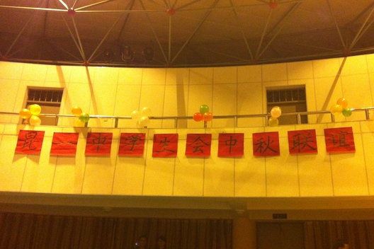 2012年9月28日晚上,学校科技楼报告厅张灯结彩,热闹非凡,我校团委学生会正在进行中秋节联谊晚会,整个晚会不仅有精彩的节目,还有很多有趣的互动游戏,最后大家还拿出自己带来的月饼,和学校为大家准备的小零食共度中秋佳节。