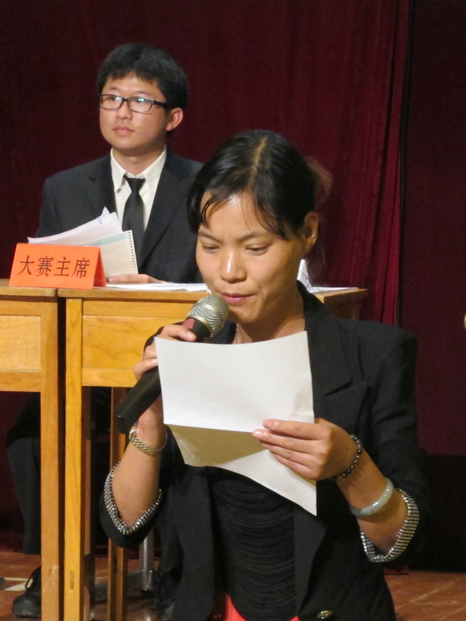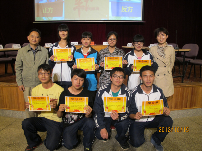 学生工作处主任杨杰文老师、学生工作处副主任陈永裕老师为优胜班级和最佳辩手颁奖