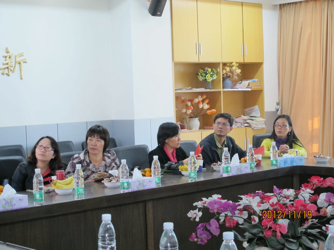 2012年11月19日,广州市班主任工作专业委员会代表在广州市教育局刘处长的带领下,到我校进行德育工作交流。昆明市教育局德宣处马淑惠处长和处长助理李林老师亲临昆一中组织交流活动。学校党委副书记、副校长高富英老师向客人介绍了我校的德育工作,广州市班主任工作换页委员会的代表介绍了班专委的工作,学生工作处杨杰文主任和陈永裕副主任同来宾进行了班主任管理工作的交流。