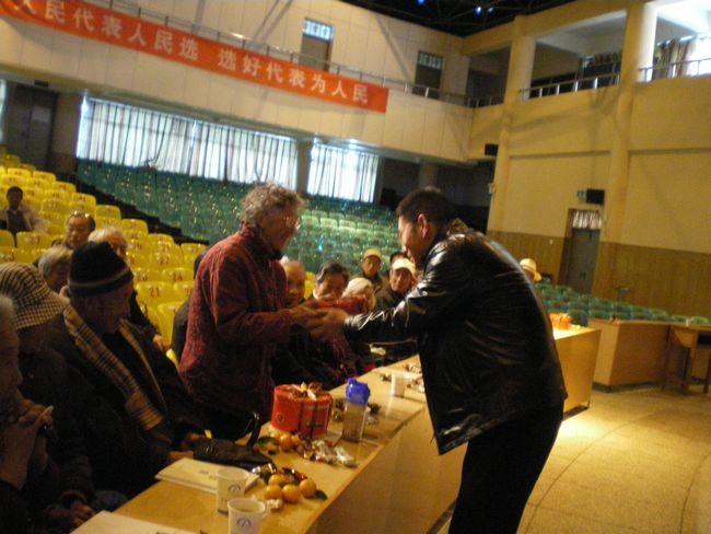 赵灿东校长为寿星送上慰问金