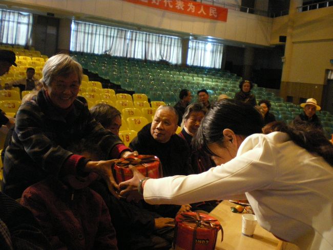 岁以上的寿星们送上了寿糕和慰问金,同时还为金婚夫妇送上了慰问金。