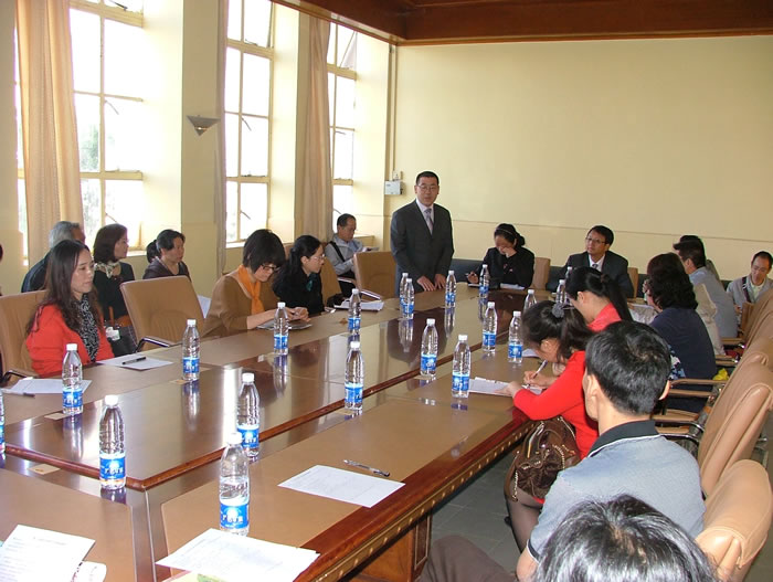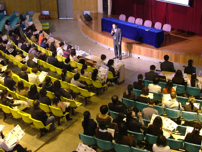 在科技楼报告厅听取赵灿东校长关于学校工作情况的报告