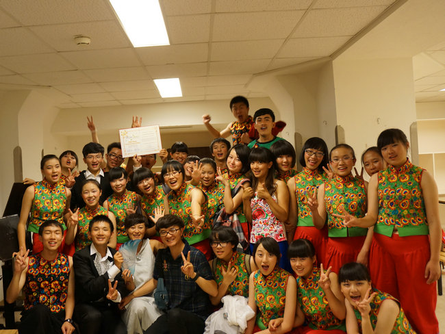 我校金枫合唱队是一支由学生指挥登台的团队,学生指挥第一次在金色大厅登台指挥,令所有评委和专家赞叹不已。我校高2013届文3班完宗达、高2014届15班杭亚楠同学获得了最佳指挥奖,由于合唱团极具云南民族特色表演,组委会特聘张金老师为世界和平合唱委员会委员。同时,由于我校金枫合唱队因各方面出色的表现,我校合唱队还受到了奥地利国家电视台、中国中央电视台专访。