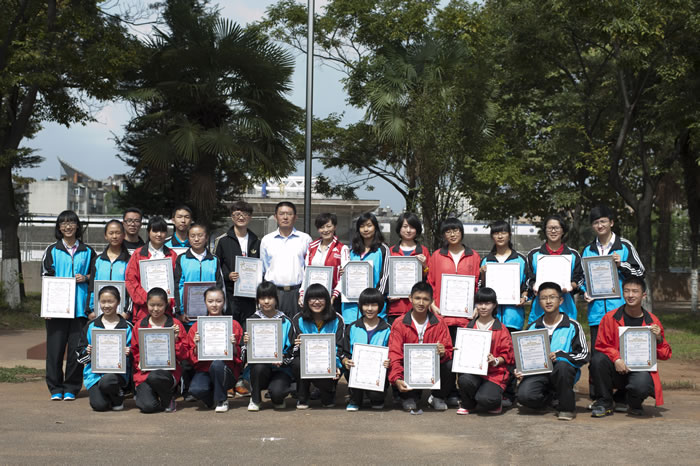 (唯一一个最高奖项),载誉归来的合唱队与赵灿东校长合影。