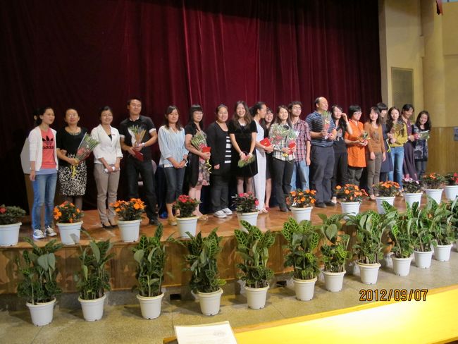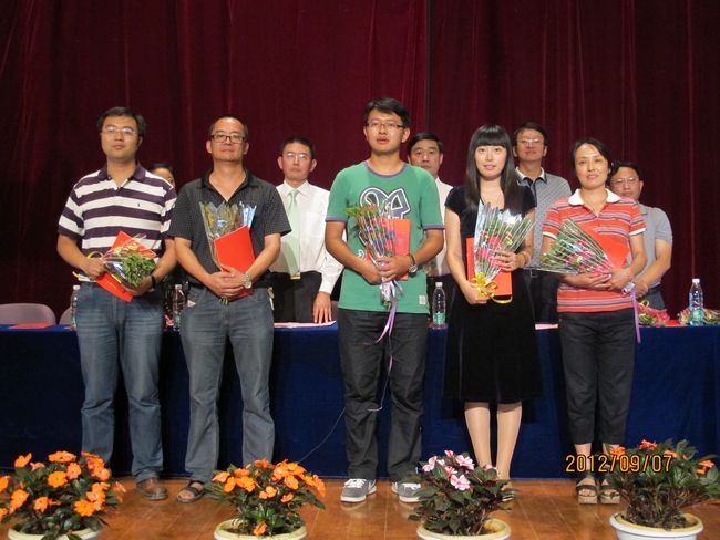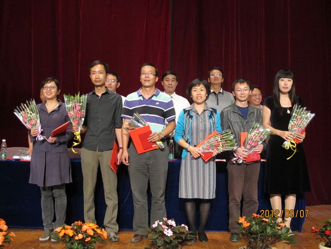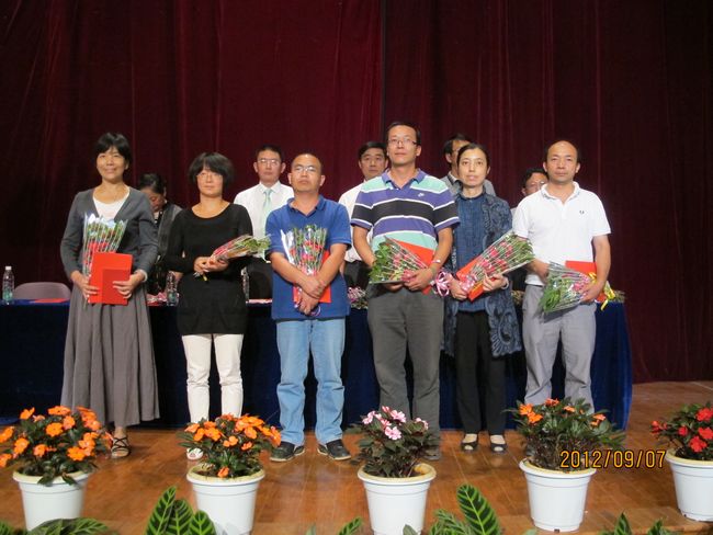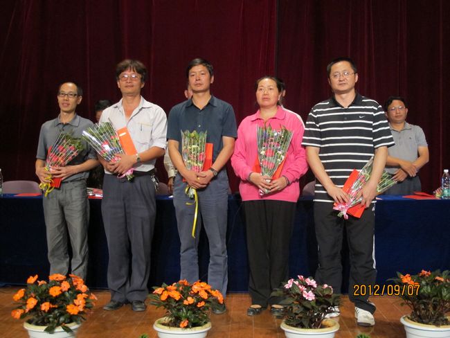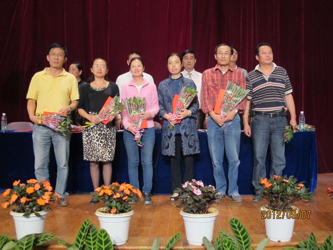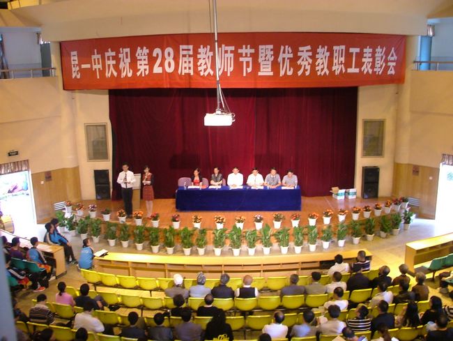 2012年9月7日下午四点,在第二十八个教师节来临之际,昆一中教师节表彰大会隆重举行。大会由党委副书记、副校长高富英老师主持,党委书记王泉老师宣读学校表彰决定,校领导给获奖教师颁发荣誉证书和鲜花。随后进行了新教师拜师仪式,这是学校多年的传统,目的在于发挥昆一中骨干教师的传、帮、带作用,促进青年教师快速、健康成长。赵灿东校长在问候和祝福之余,希望全体教师把师德修养放在更加突出的位置,更加自觉地坚持进一步完善自身知识结构。教育是一项崇高的事业,需要我们甘于奉献;教育是一门严谨的科学,需要我们勇于探究;教育是一门多彩的艺术,需要我们开拓创新;教育是一个系统的工程,需要我们共同参与,齐心协力。一中的发展靠大家,在新的征途中,让我们携手共进,共创辉煌!