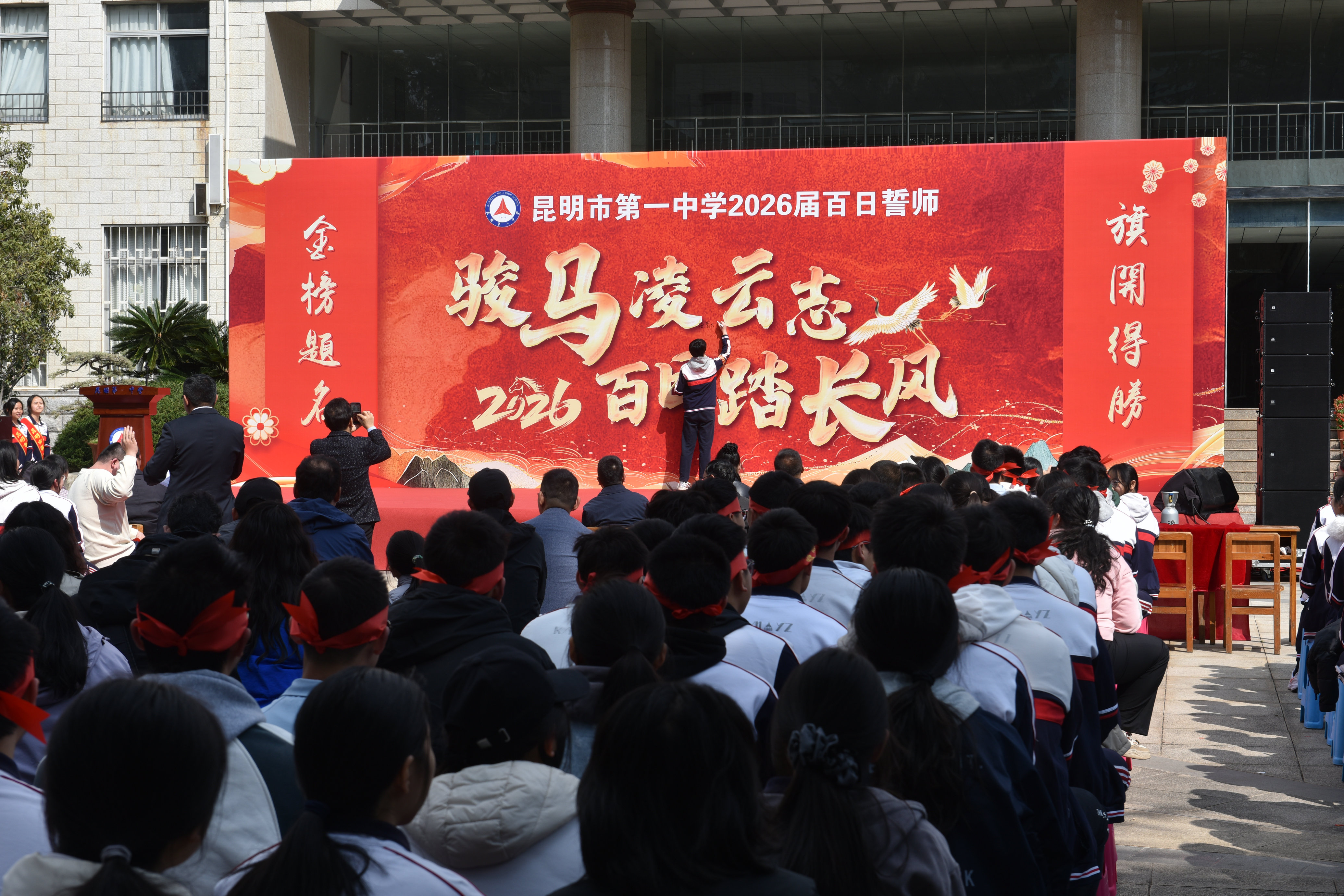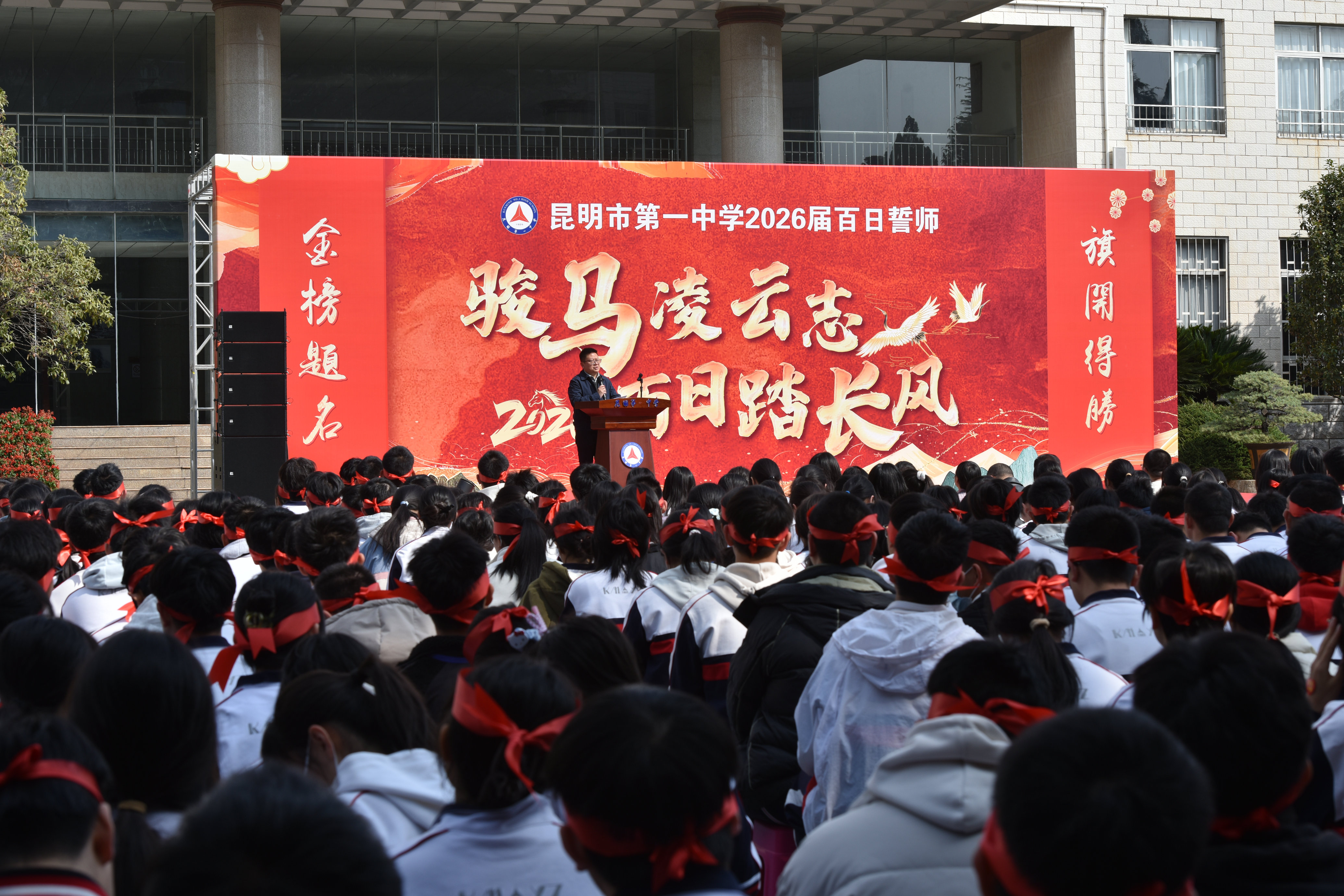 春潮澎湃,战鼓催征;百日砺剑,誓创辉煌。为点燃高三学子备战高考的昂扬斗志,2月26日,昆明市第一中学隆重举行2026届高三开学典礼。学校领导与高三全体师生齐聚校徽广场,共同见证这场青春与誓言交织的盛会,为即将奔赴考场的学子擂响奋进的战鼓。