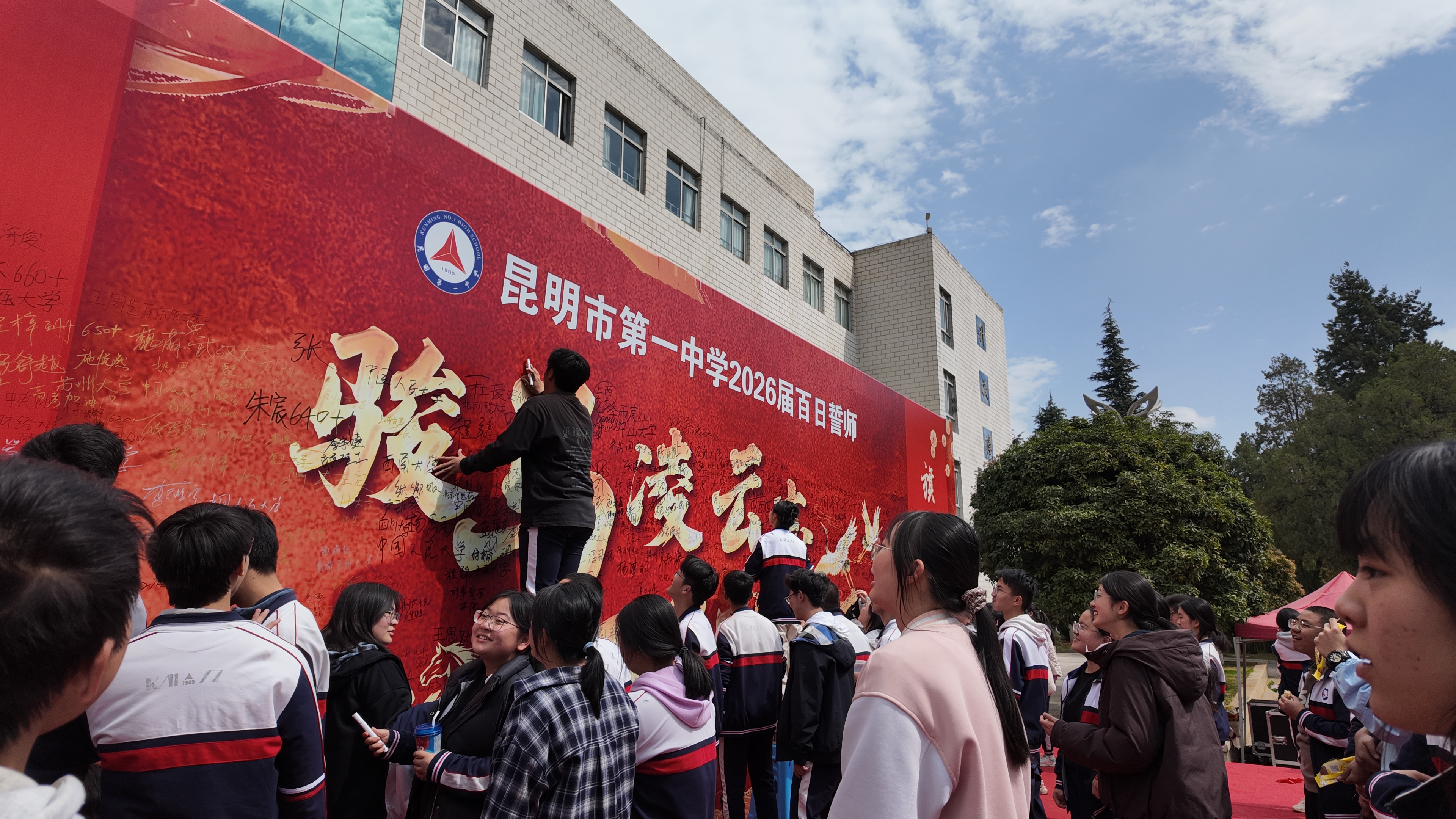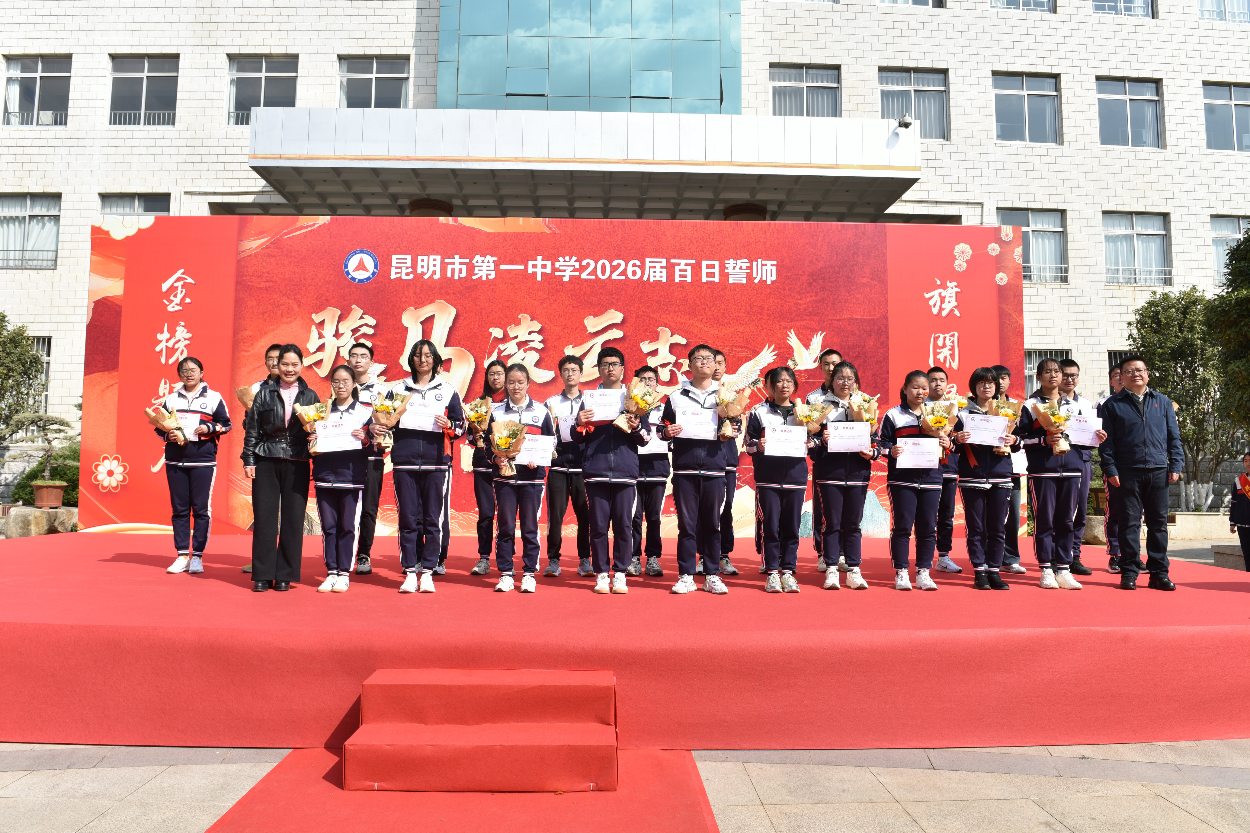 随后,高三班主任们登台,带领2026届高三学子庄严宣誓:“心怀凌云志,不负少年时。不负父母期盼,不负恩师教诲,不负青春理想,不负百日时光。珍惜一百天,让汗水孕育不凡;奋斗一百天,用信念铸就灿烂;拼搏一百天,凭实力实现梦想!”高昂的誓言余音未散,同学们齐声唱响昆华校歌:“练好我们的心,练好我们的身,此心此身,成己成人!”这正是昆华学子应始终恪守的昆华精神。