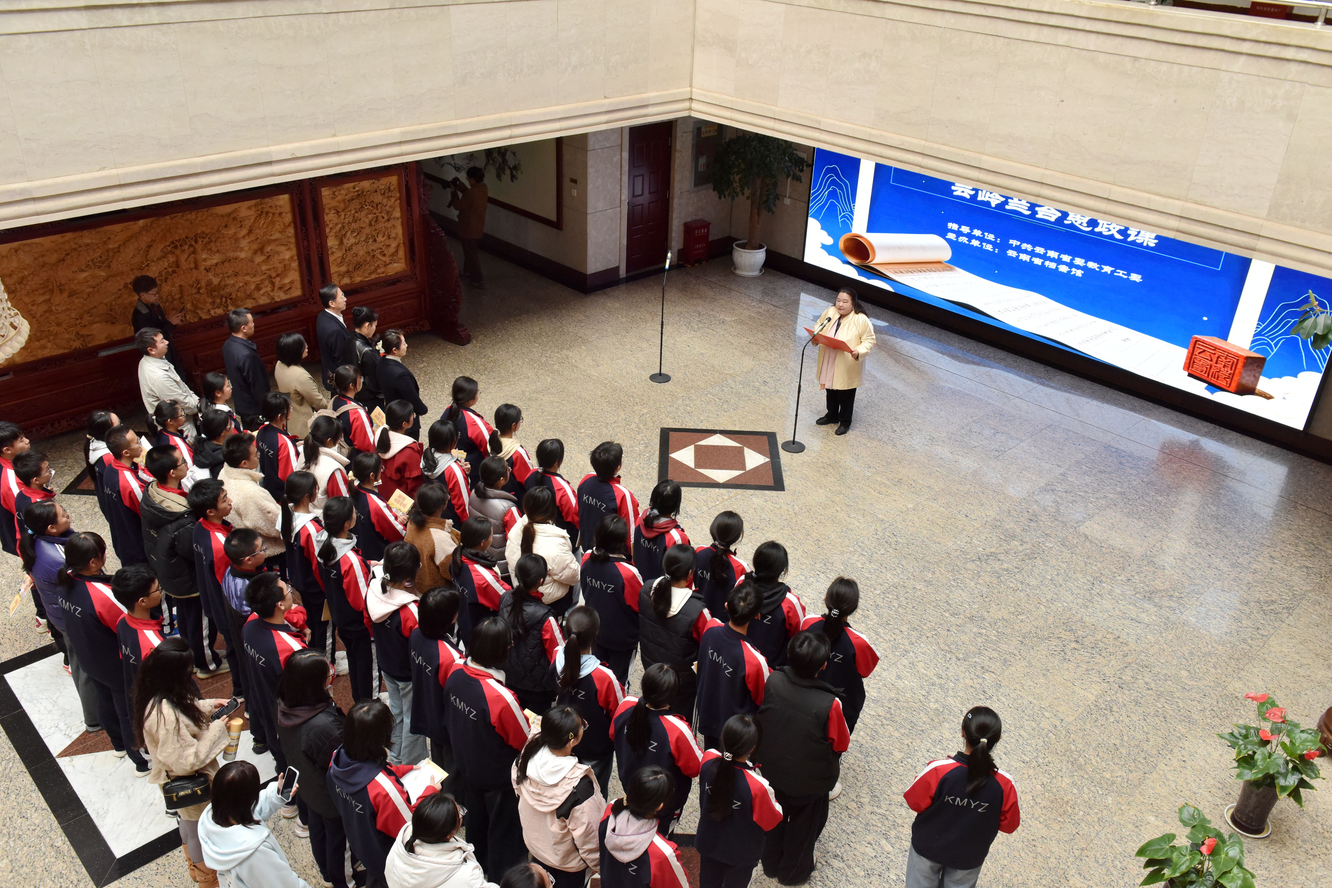 3月16日下午,昆明市第一中学50余名师生参加了由省委教育工委指导、省档案馆主办的云岭兰台思政课。“云岭兰台思政课”是省档案馆“鉴往知来 向梦逐光”大中小学一体化实践教学中心建设的一次创新实践,更是档案文化与思政教育深度融合的生动体现。课程以“档案润心·思政铸魂”为主题,通过“探、观、听、动、答”五个环节,让尘封档案承载的红色精神与文化力量,以鲜活可感的形式走进青少年心中,成为新学期别开生面的“开学第一课”。省档案馆副馆长段俐娟、昆一中校党委书记高富英分别为活动致辞,华电云南公司党委副书记韩学义及省委教育工委相关处室负责同志参加活动。