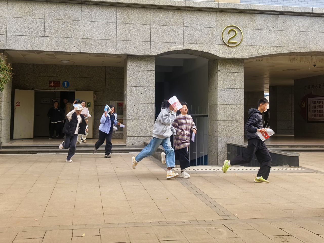 几分钟后,第二阵疏散警报声响起。各班学生在老师的引导下,按照预定路线快速撤离教室。楼道里,负责疏导的老师坚守岗位,指引学生沿着楼梯右侧有序疏散。同学们护住头部,快步前行,没有推挤喧哗。