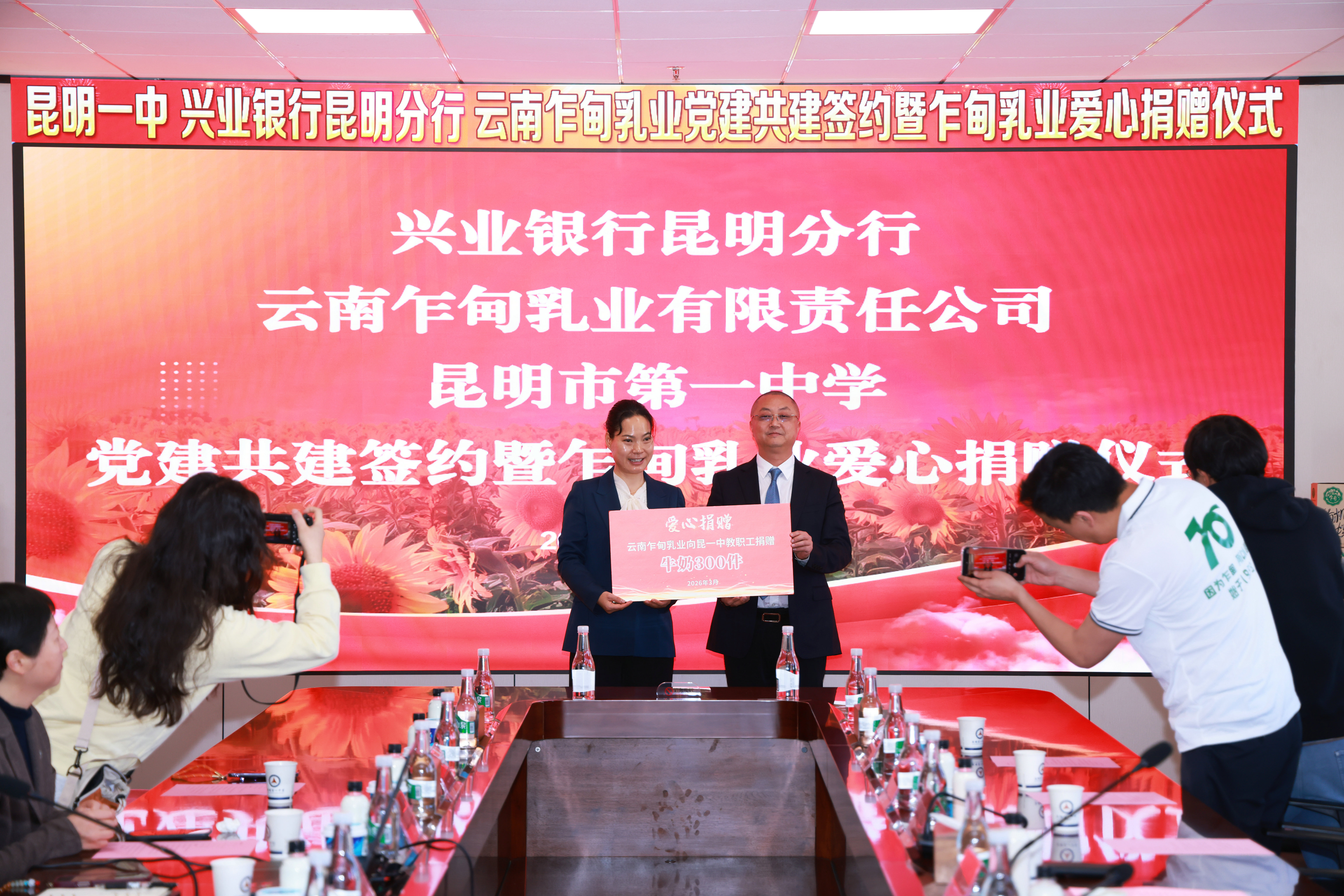 为不断拓宽党建联建路径,构建教育、金融、实业三方协同发展的育人新格局,3月26日,昆明市第一中学、兴业银行昆明分行、云南乍甸乳业有限责任公司党建共建签约暨爱心捐赠仪式在昆一中举行。校银企三方齐聚一堂,以党建为纽带,共话责任担当,共商合作发展,共育时代英才。