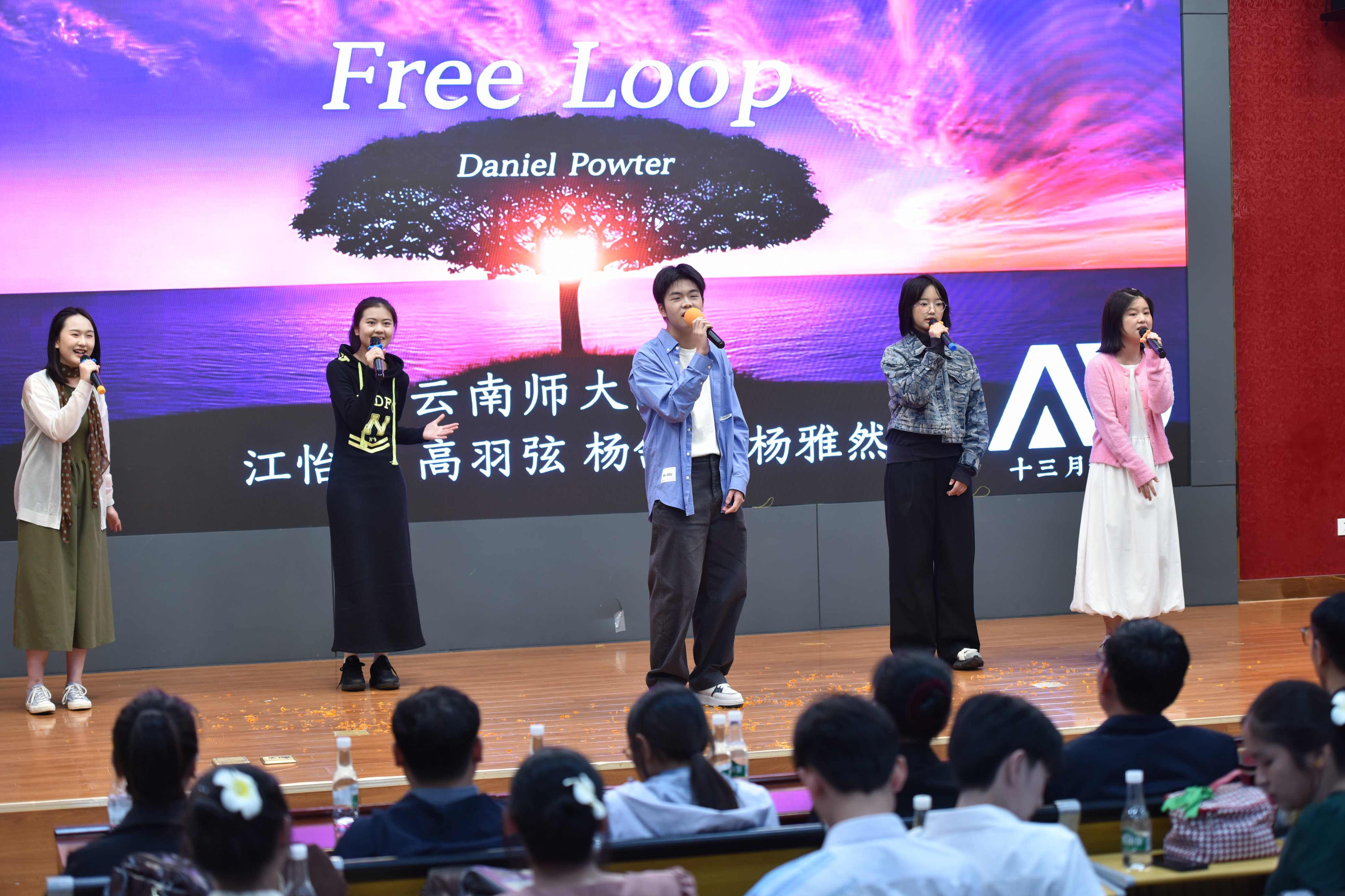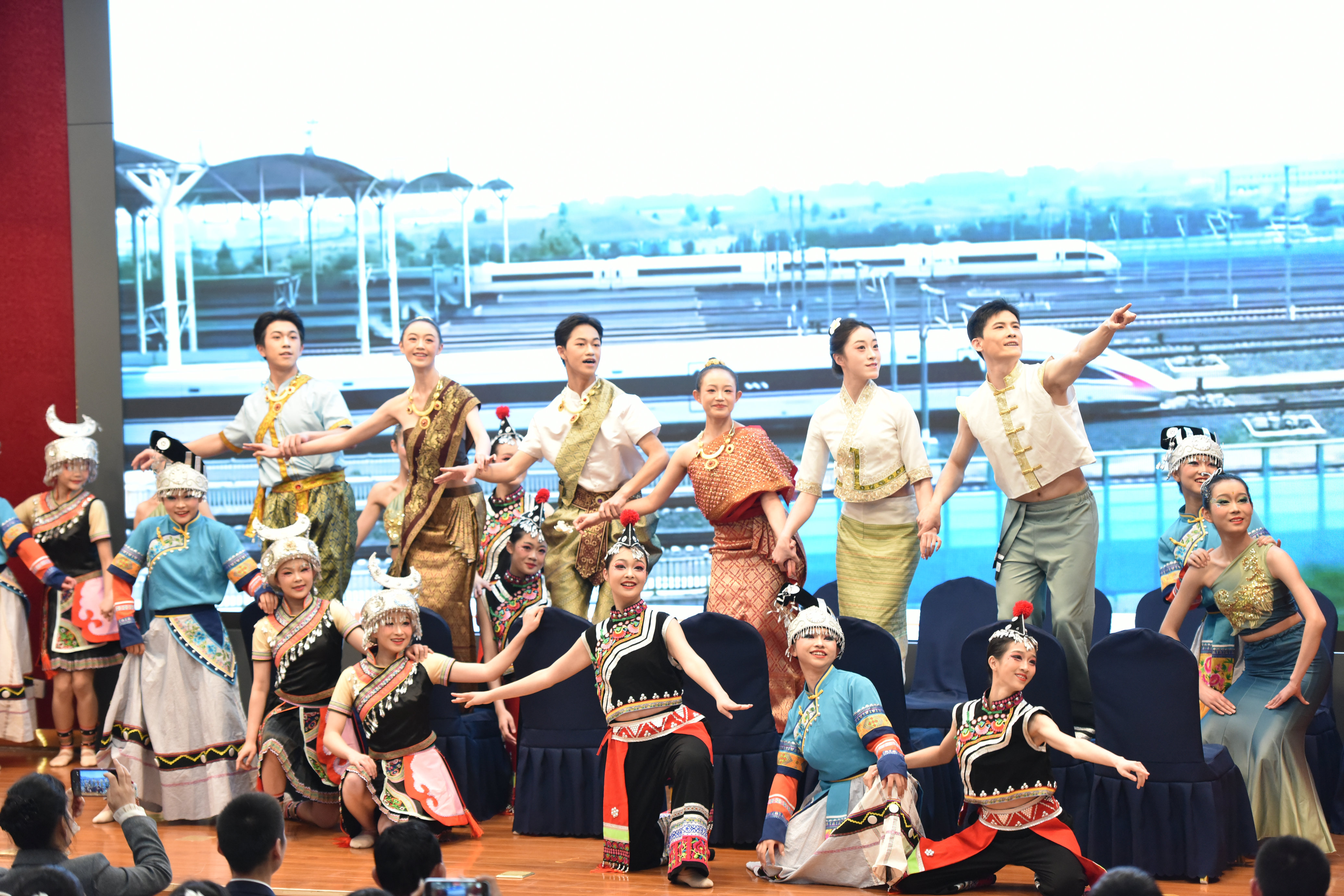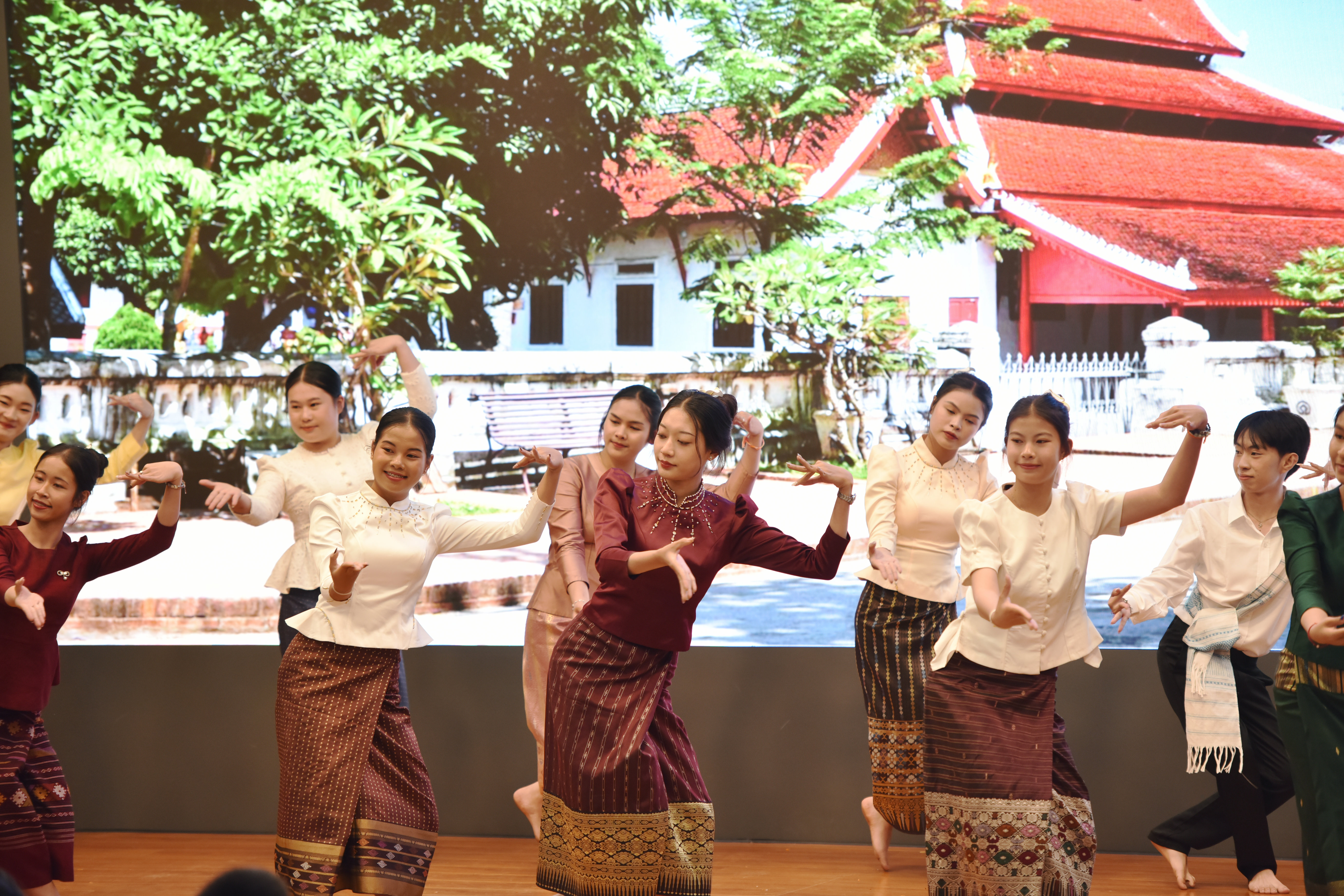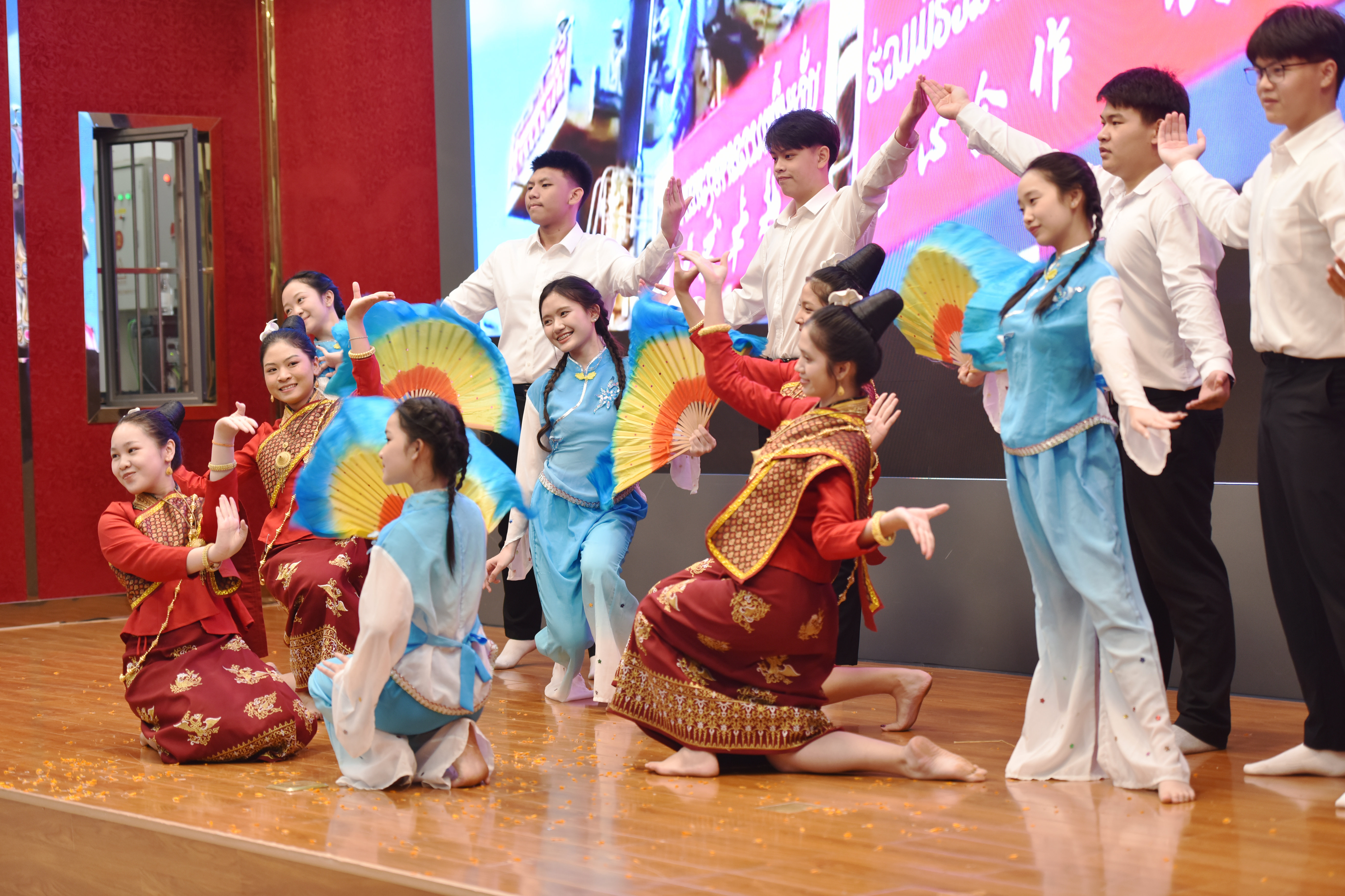 随后,昆一中、云南师范大学附属中学、老挝万象寮都公学、万象中学、琅勃拉邦和平中学五校学子,在学校综合楼报告厅共同呈现了一场精彩纷呈的文艺汇演,以艺术为桥,架起中老青年友谊的彩虹。汇演开篇,昆一中学子带来的中老铁路主题舞蹈震撼全场,舞者们以灵动的肢体语言,生动诠释了“一带一路”的时代脉动,展现了中老铁路作为“幸福路、发展路、友谊路”的深刻内涵,钢铁丝路与青春舞步交相辉映,为整场演出奠定了恢弘而温暖的基调。紧接着,老挝学子带来《欢迎来到老挝》《向快乐出发》等节目,以热情奔放的东南亚风情回应中方学子的盛情,其中中文歌曲的巧妙融合,更让两国青年的心贴得更近,友谊的暖流在现场悄然升温。云南师范大学附属中学学子带来的《Free Loop》与《我们的歌》串烧,以流行旋律搭建起跨越国界的青春共鸣,展现了当代青年学子开阔的国际视野。压轴登场的昆一中学子表演《兰亭序》,将中国传统文化的雅致气韵挥洒得淋漓尽致,水墨意境与少年风华相得益彰,为整场文艺汇演画上了诗意而圆满的句点。中老两国学子以艺会友、以心相交,用青春的热情与真诚,共同谱写了中老“胞波”情谊的新篇章。