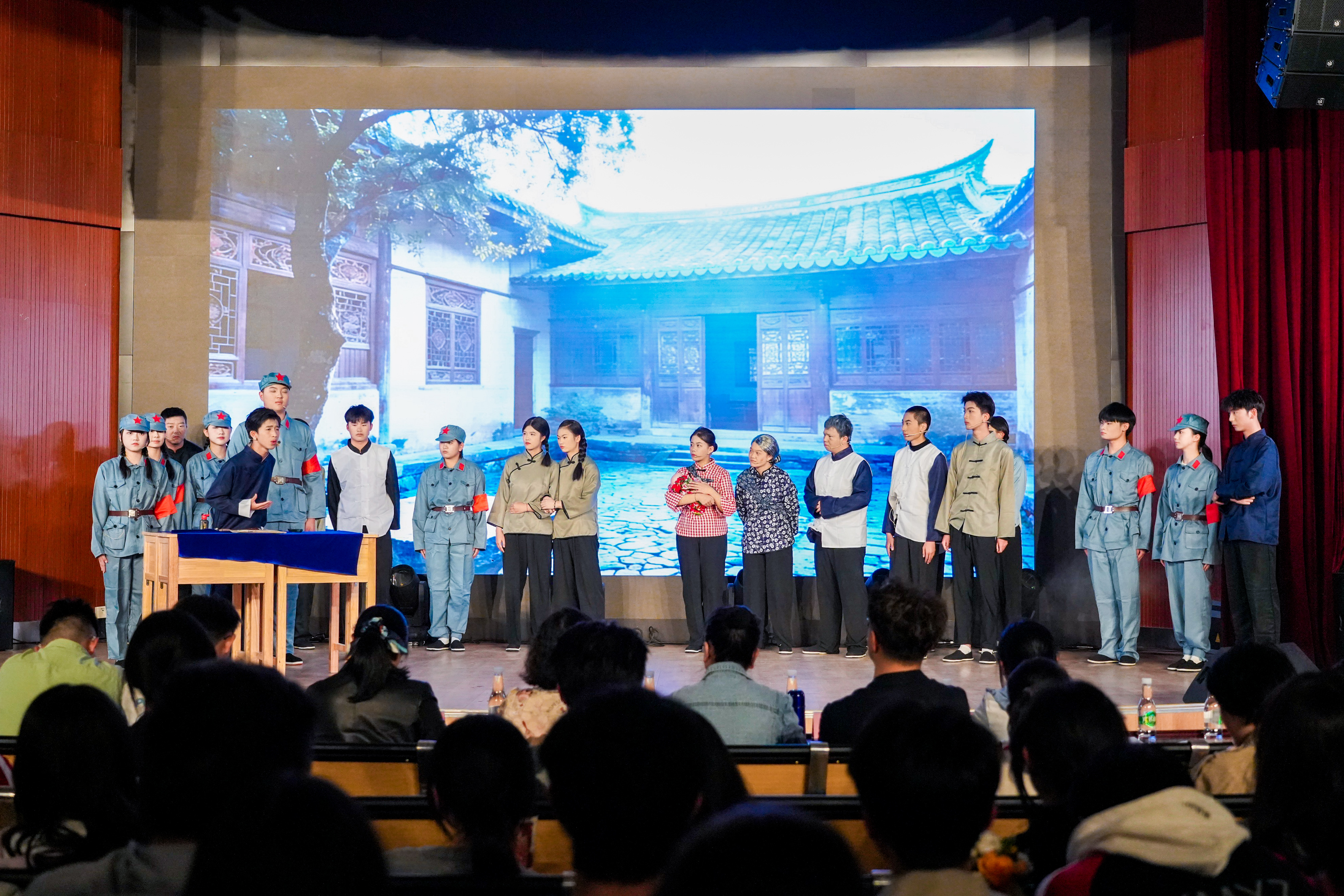 昆一中语文老师张静点评到:同学们的课本剧实现了文学与生命的交融。你们把课本中的经典篇章,化作了对昆华一百二十载精神的深情回望与青春注脚。矛盾不止于敌我之间的刀光剑影,更在于深入人物内心的挣扎与抉择。台词掷地有声——无论是铿锵的对白、深情的独白,还是恰到好处的旁白,都扣人心弦。那些重要的历史瞬间、那些闪耀的名字,在你们的演绎中不再是尘封的文字,而是可感可触的血肉与心跳。你们以当代青年的方式,完成了对校史的致敬、理解与接续,让昆华的风骨在舞台上重新呼吸。