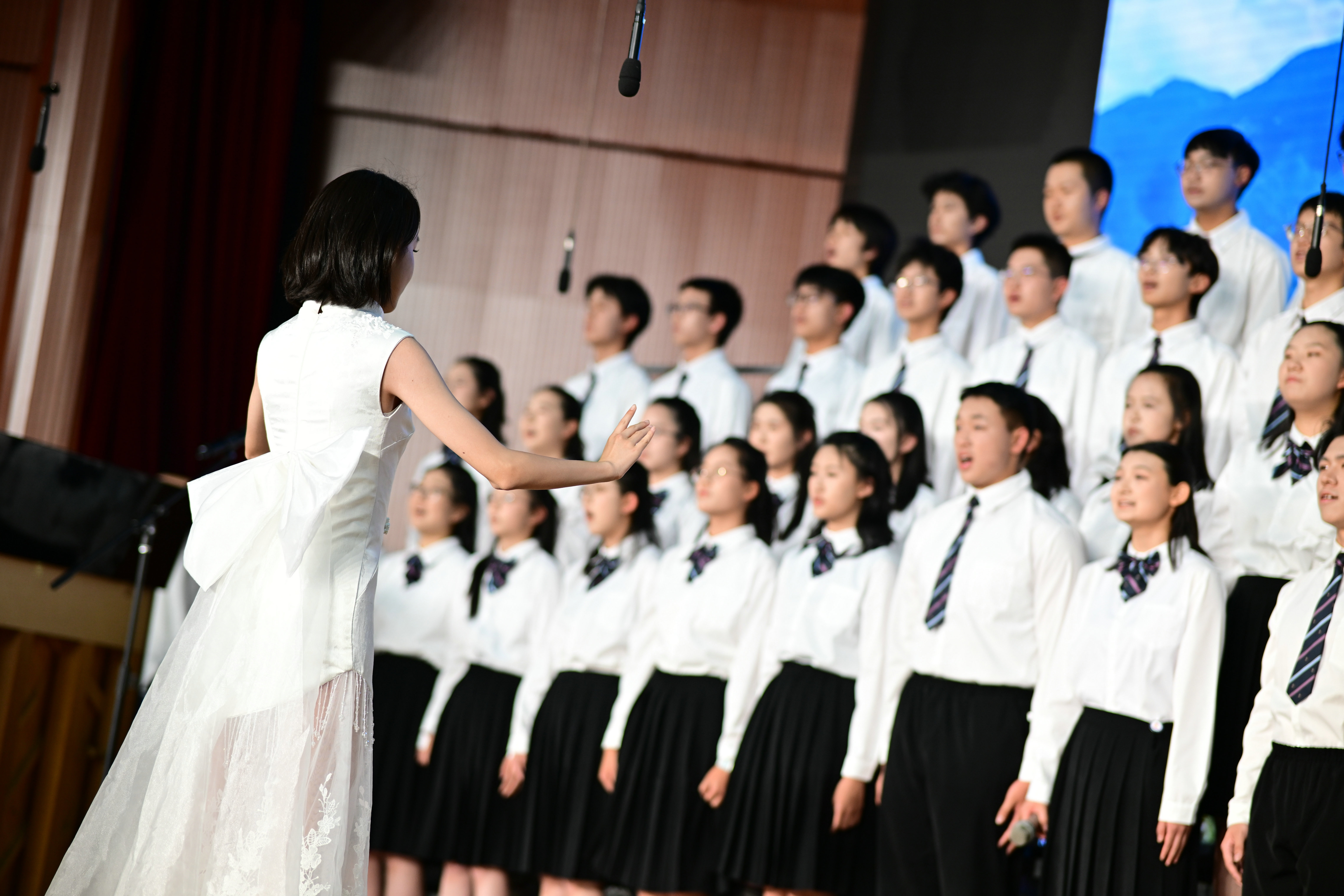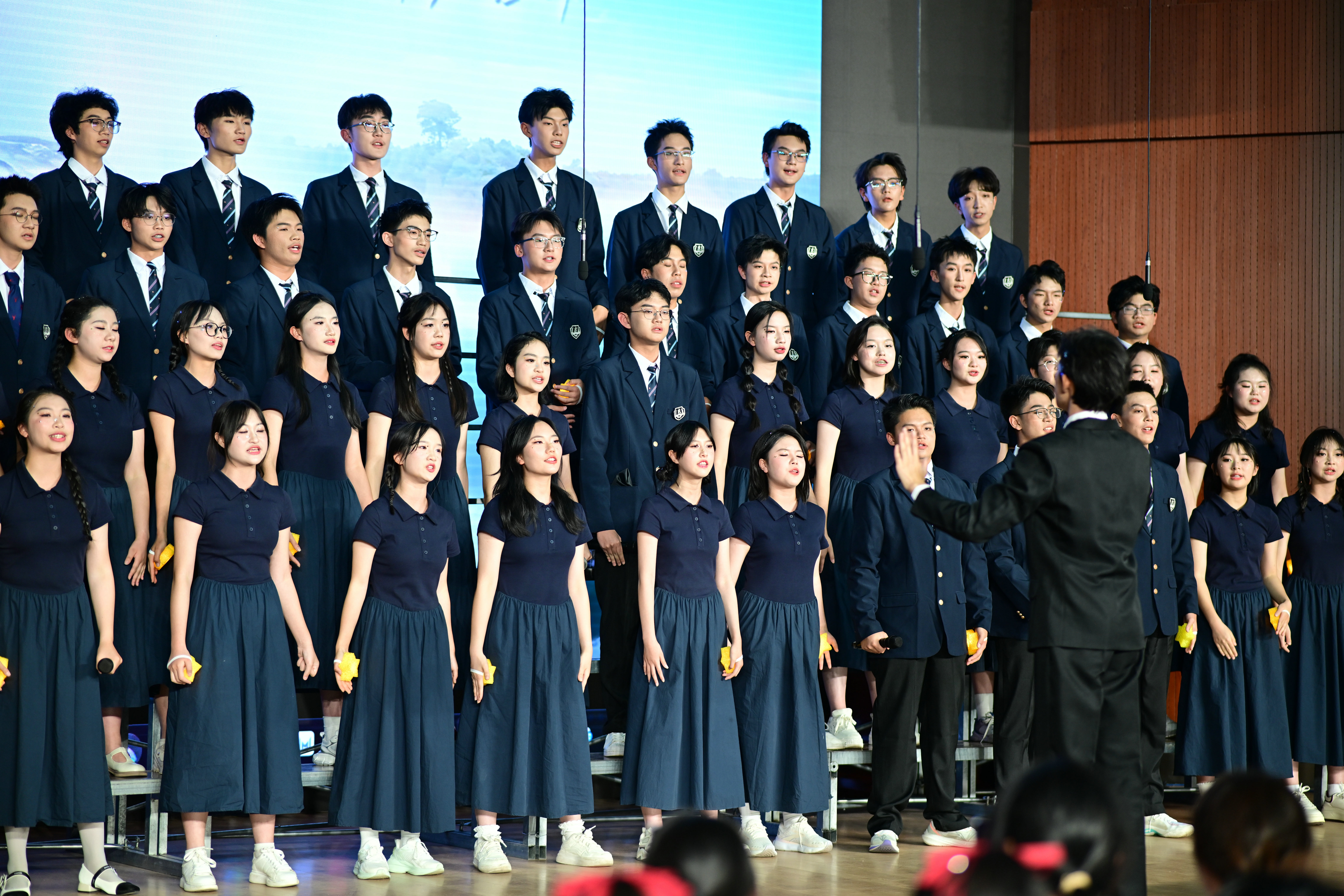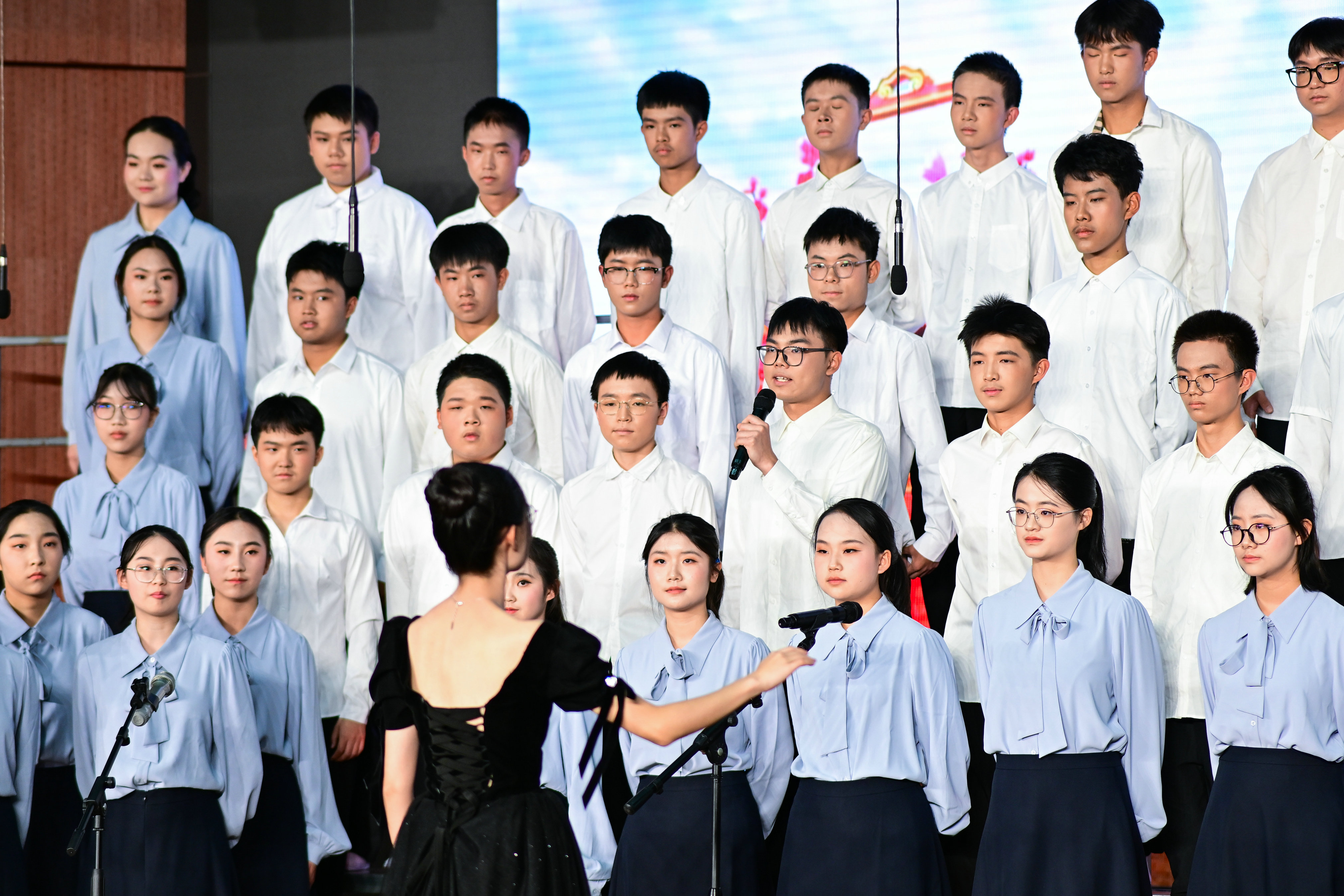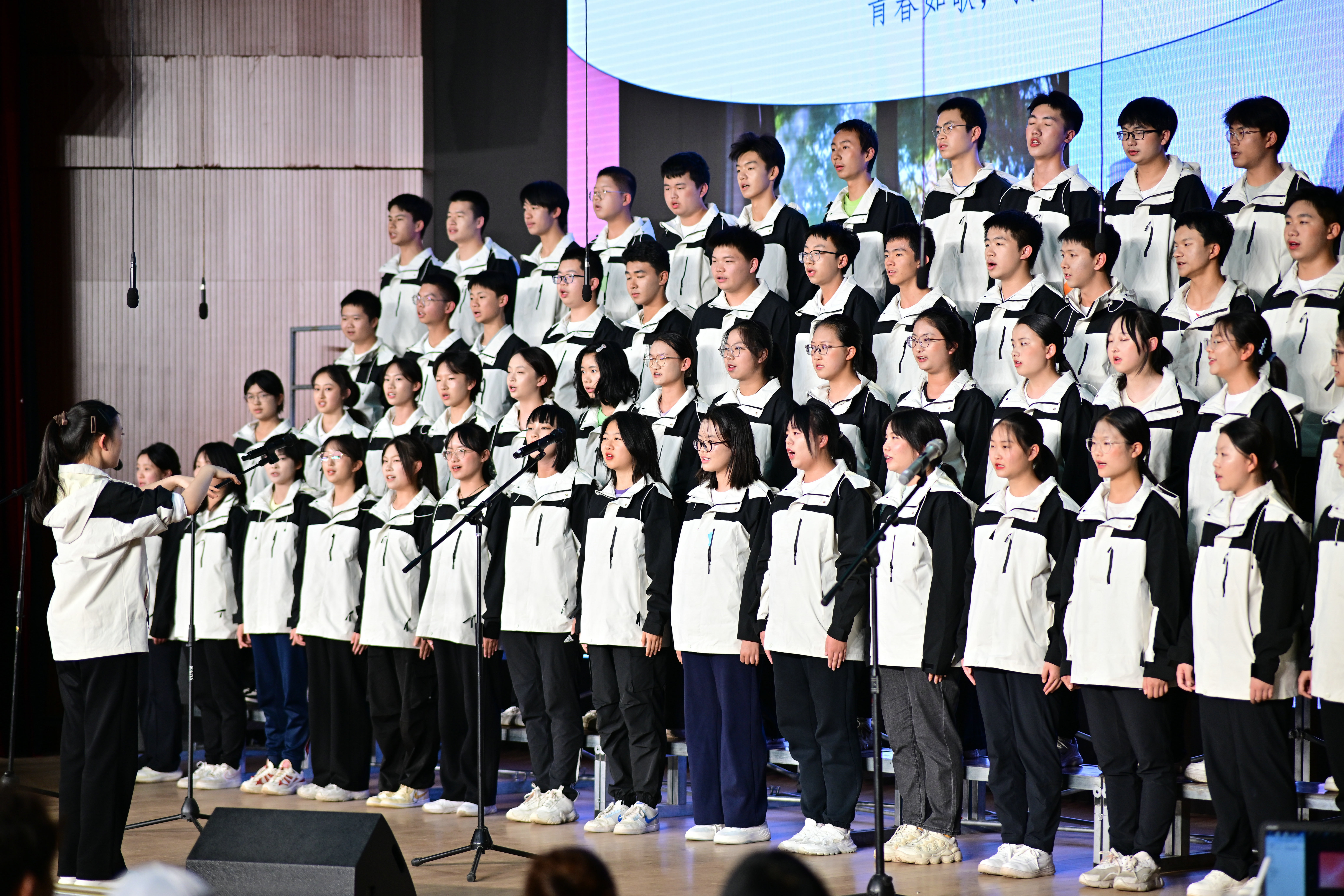 2班以《我是如此相信》为誓,以青春之名赴时代之约,怀揣热爱与勇气,坚定向前,始终追逐光、成为光;16班以《你从未离去》诠释同窗温情,前路相伴,情谊不散;8班以《紫荆花盛开》唱响紫荆盛放,情深意长,愿繁花永驻、山河无恙;14班《夜空中最亮的星》以歌声为灯,照亮前行之路;13班用《萱草花》传递温暖牵挂,刚柔并济间尽显少年的担当与柔情;11班以“有我”为志,以青春之名守护山河壮阔,奔赴未来征途;18班以《明天会更好》祈愿美好,借和平清泉的温润,传递对未来的无限期许,愿少年前程似锦,愿世间岁岁安康。