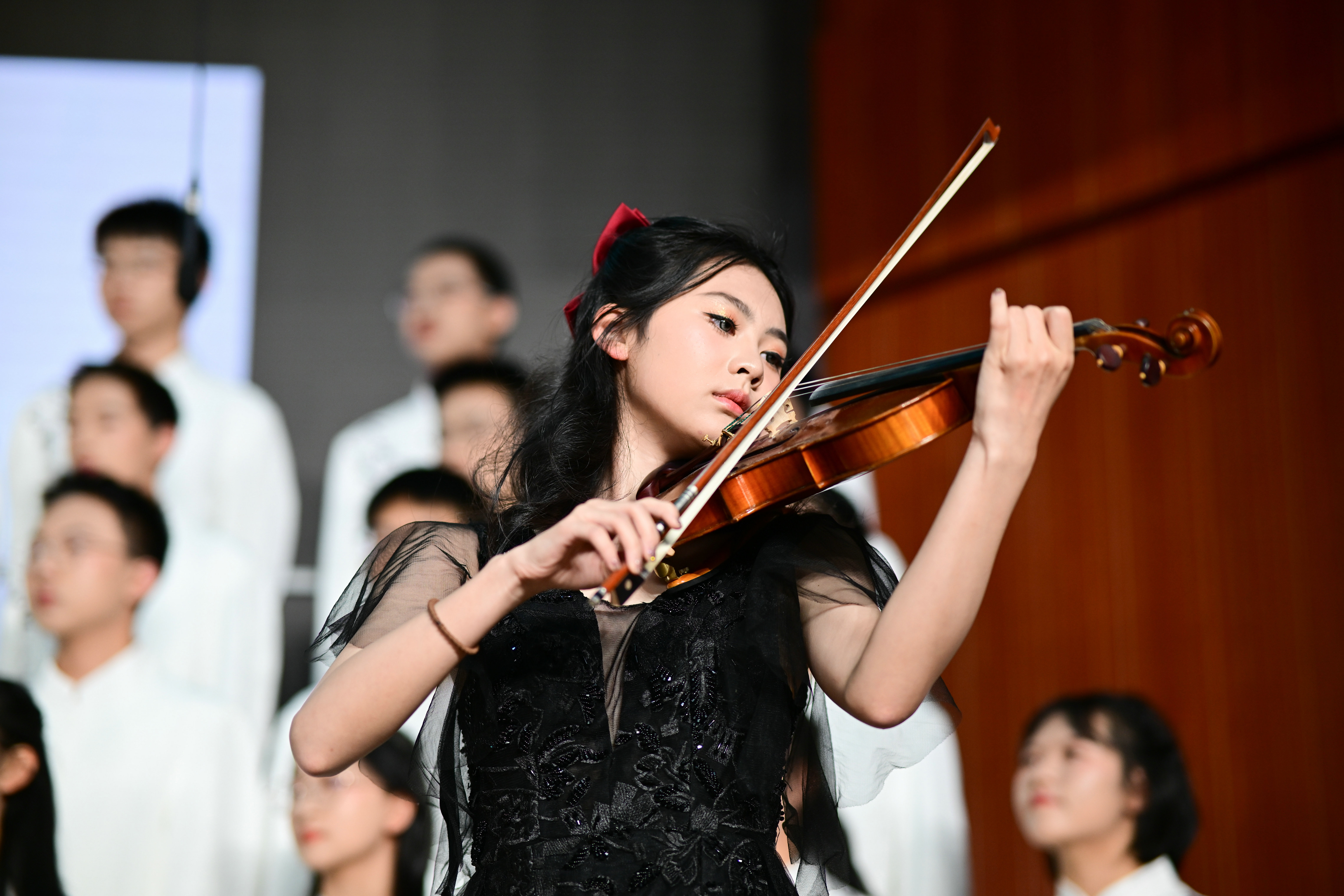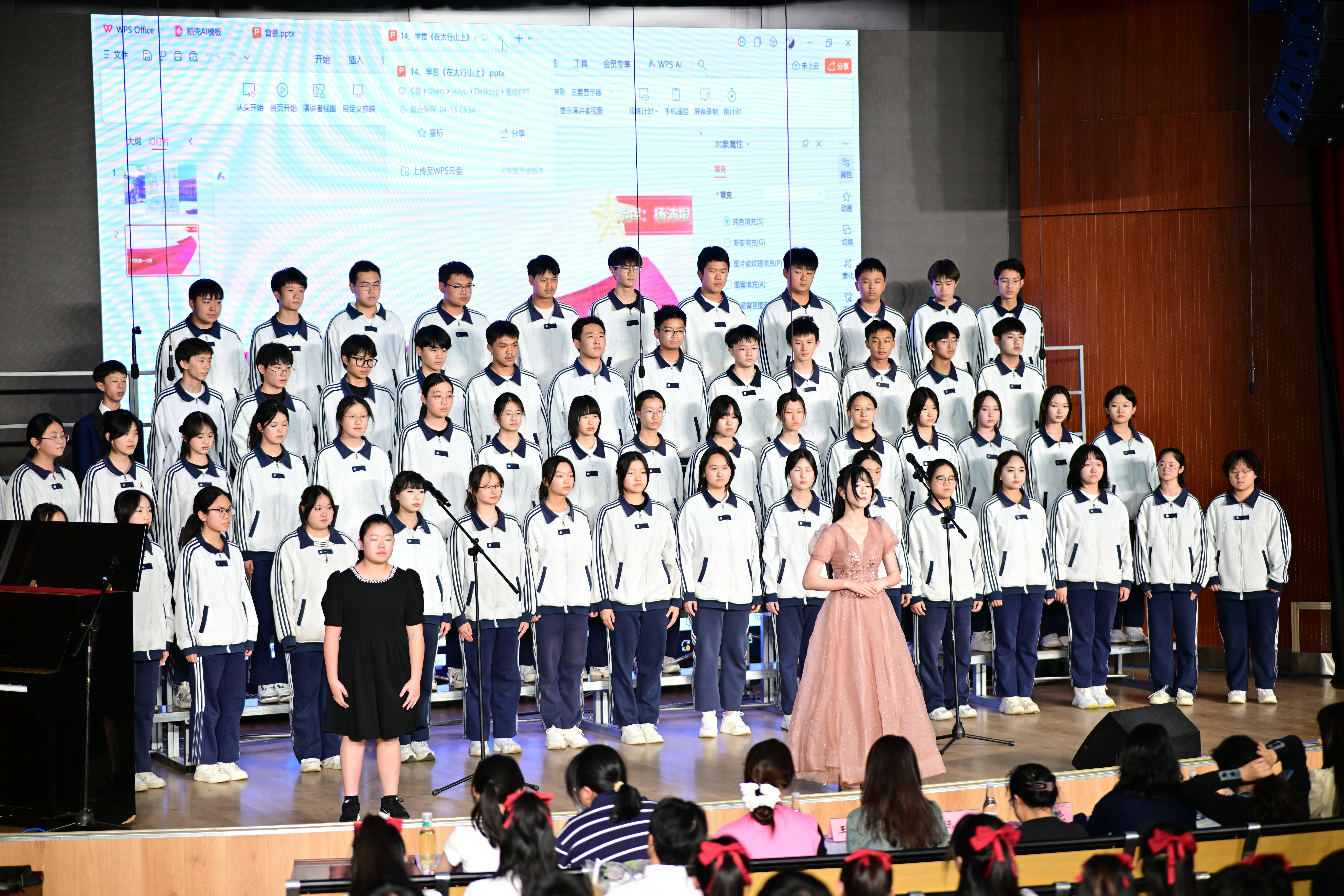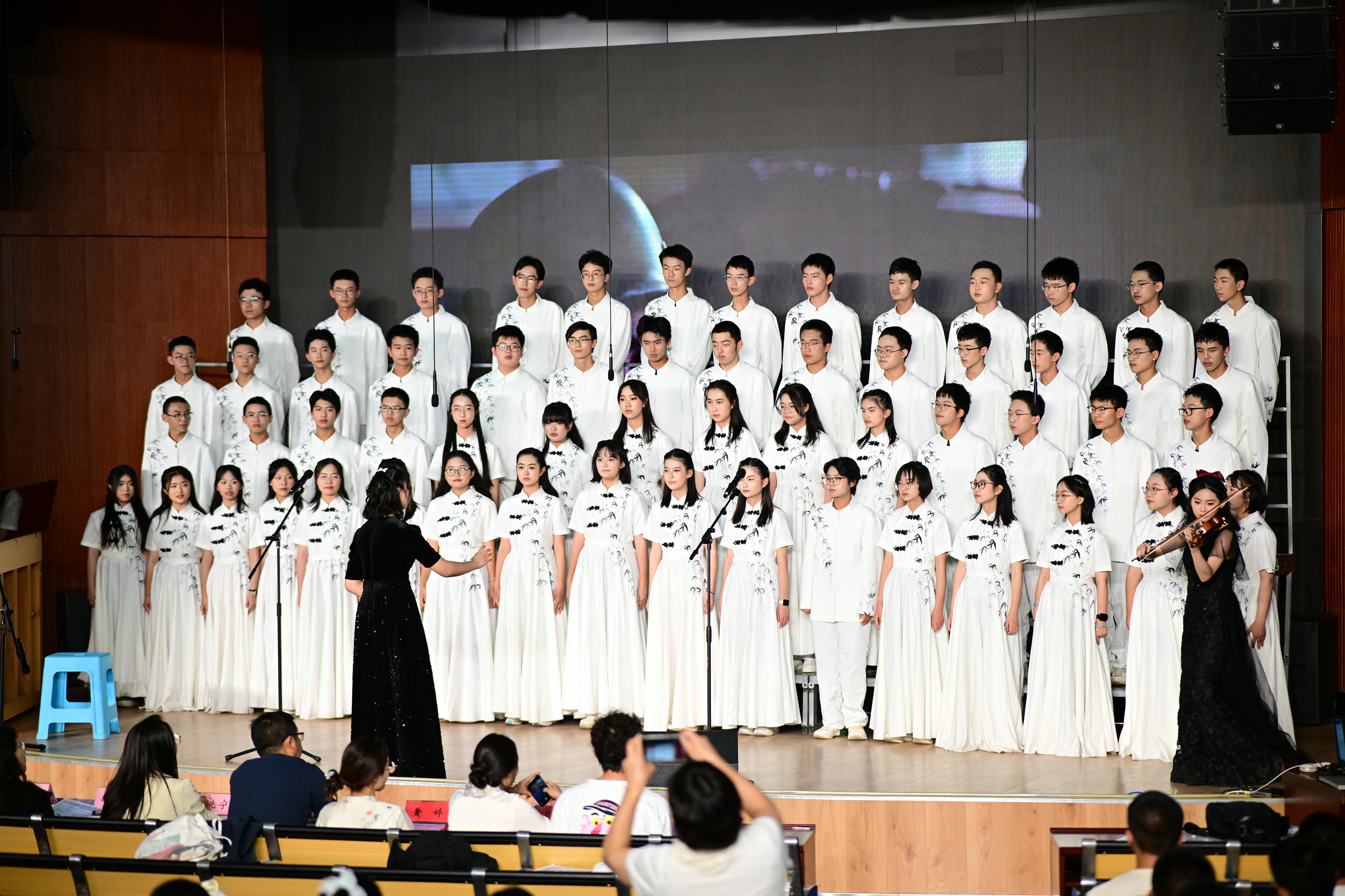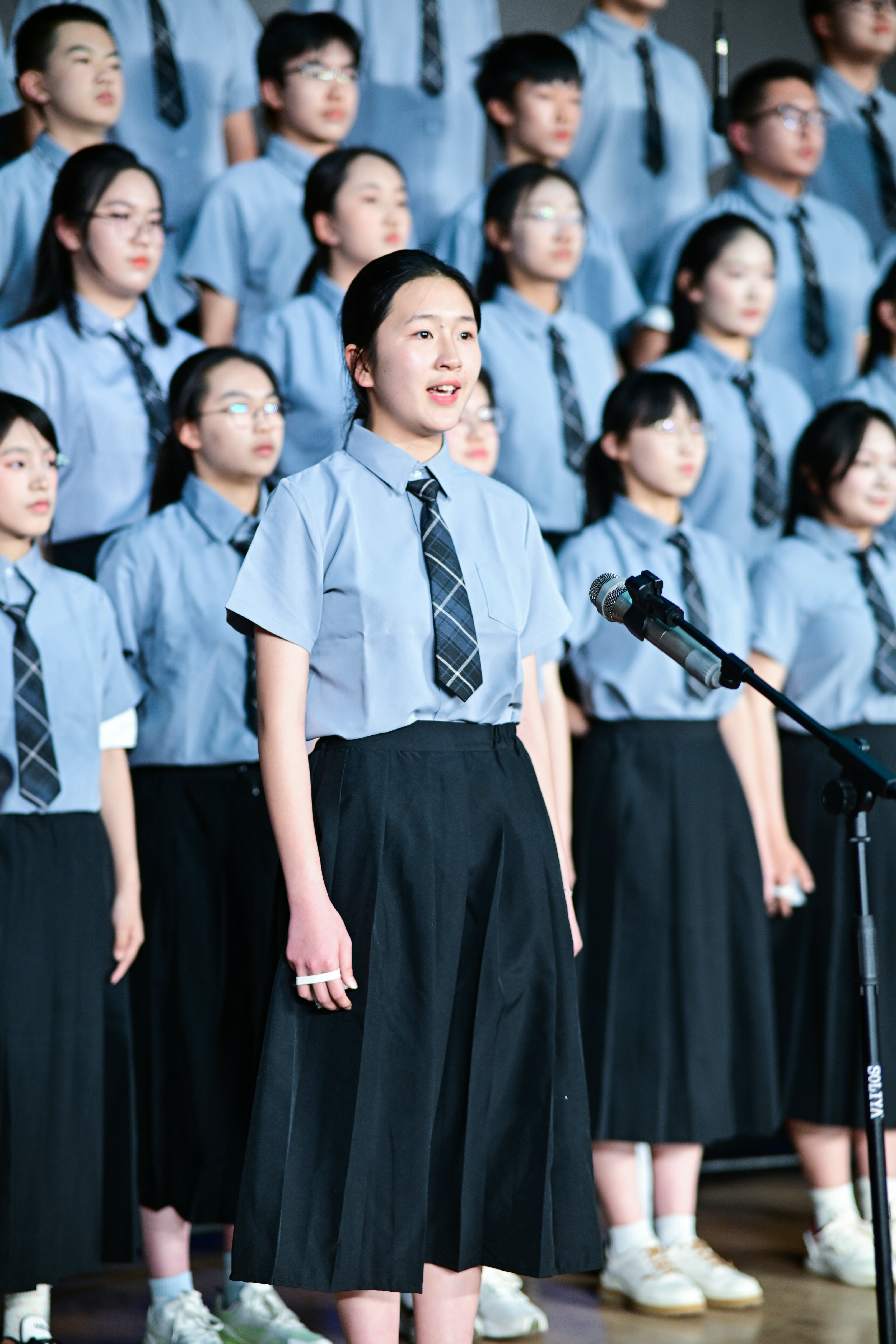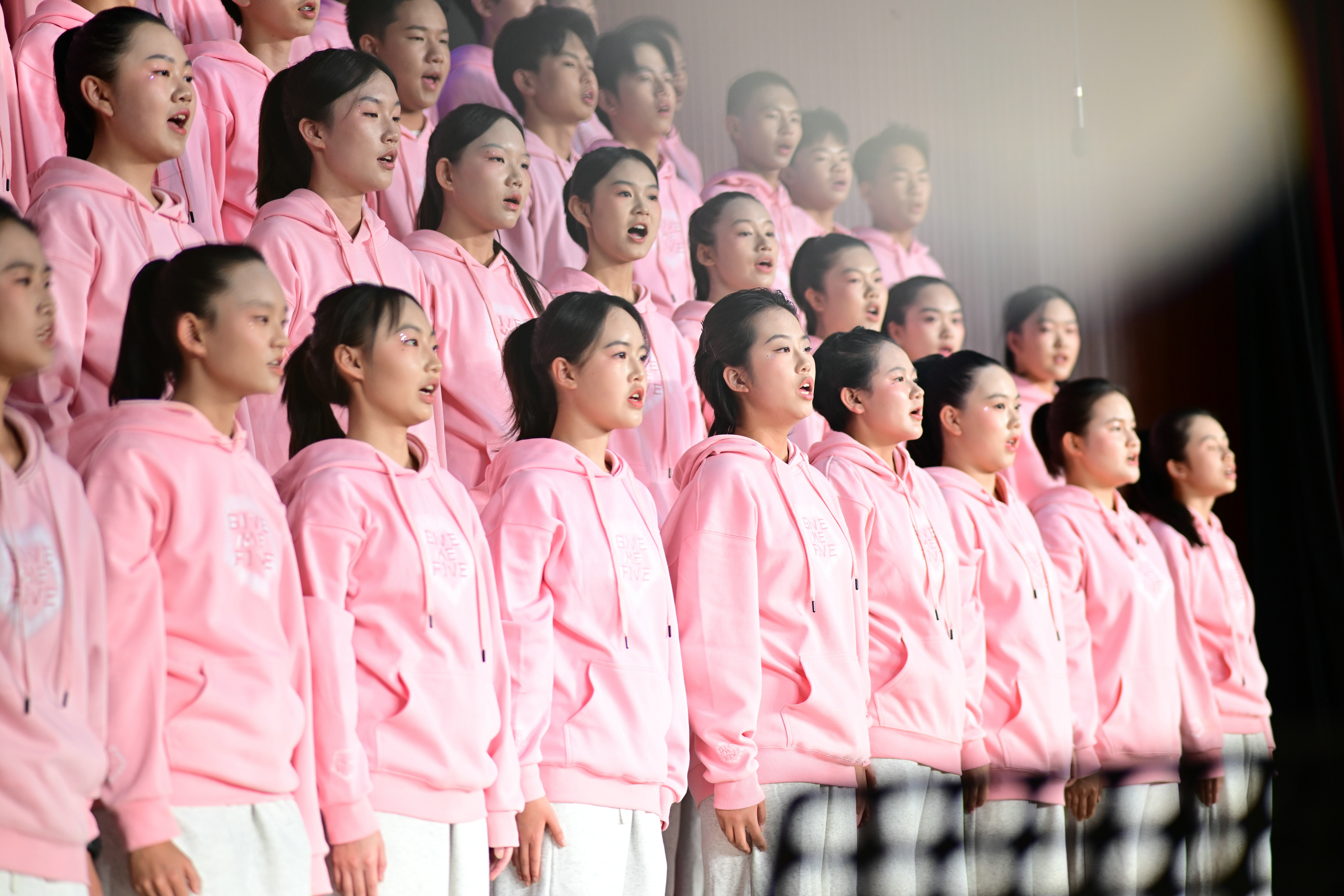 2班以《我是如此相信》为誓,以青春之名赴时代之约,怀揣热爱与勇气,坚定向前,始终追逐光、成为光;16班以《你从未离去》诠释同窗温情,前路相伴,情谊不散;8班以《紫荆花盛开》唱响紫荆盛放,情深意长,愿繁花永驻、山河无恙;14班《夜空中最亮的星》以歌声为灯,照亮前行之路;13班用《萱草花》传递温暖牵挂,刚柔并济间尽显少年的担当与柔情;11班以“有我”为志,以青春之名守护山河壮阔,奔赴未来征途;18班以《明天会更好》祈愿美好,借和平清泉的温润,传递对未来的无限期许,愿少年前程似锦,愿世间岁岁安康。